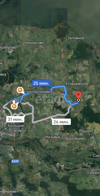 Расстояние от центра Калининграда до поселка 32 км., время в путина автомобиле займет 41 минуту. Расстояние до Гурьевска 22 км., на автомобиле время займет 25 минут. Номер в базе: 7749409. Район: поселок Азовское