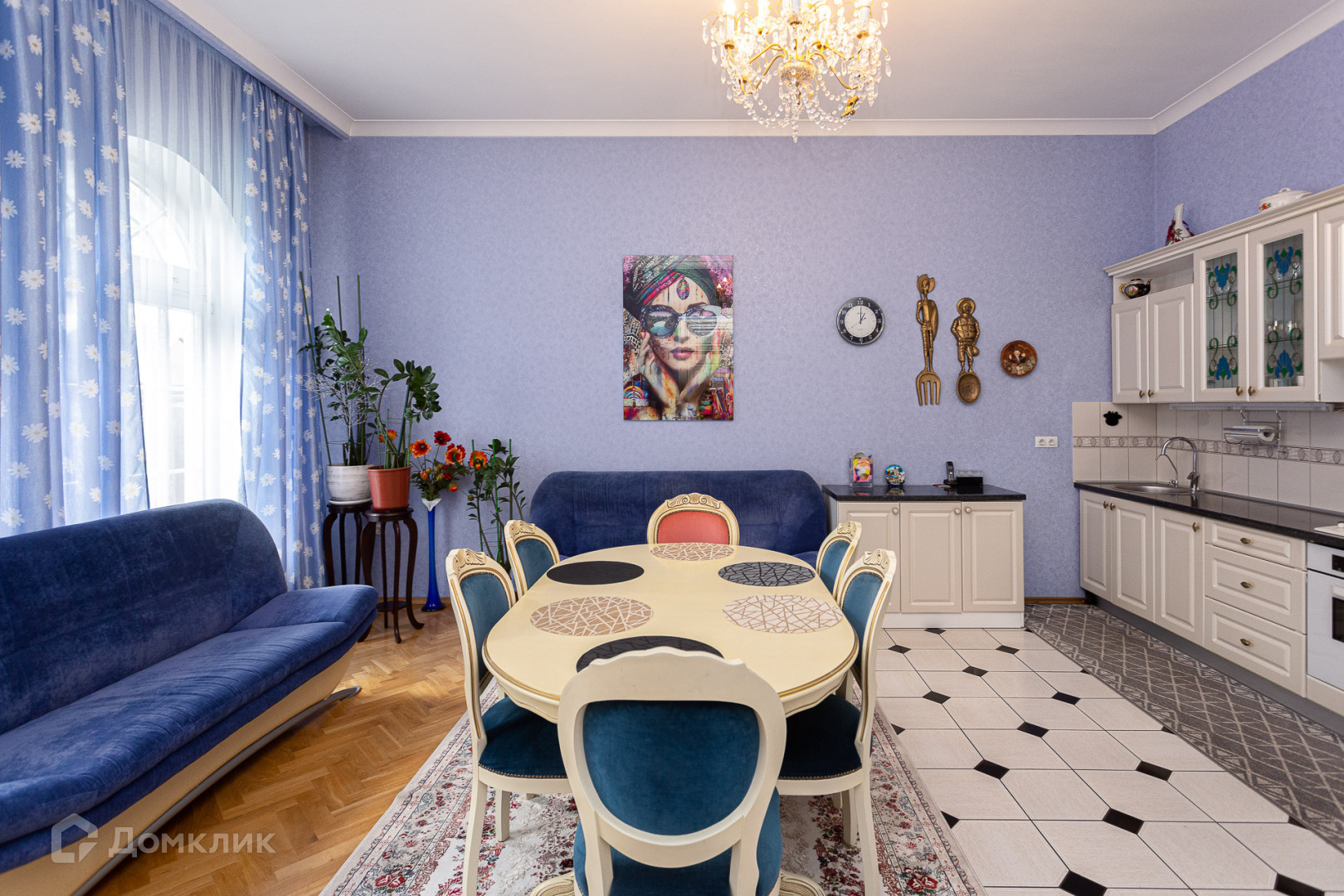 Грамотная планировка с большими комнатами и высокими потолками (3.50м) создает ощущения простора.
