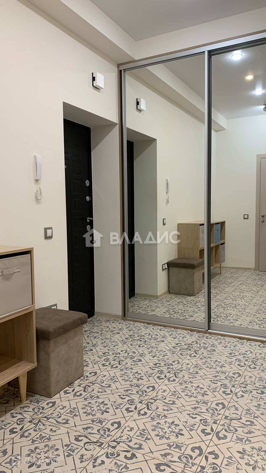 Просторный коридор и встроенный шкаф.