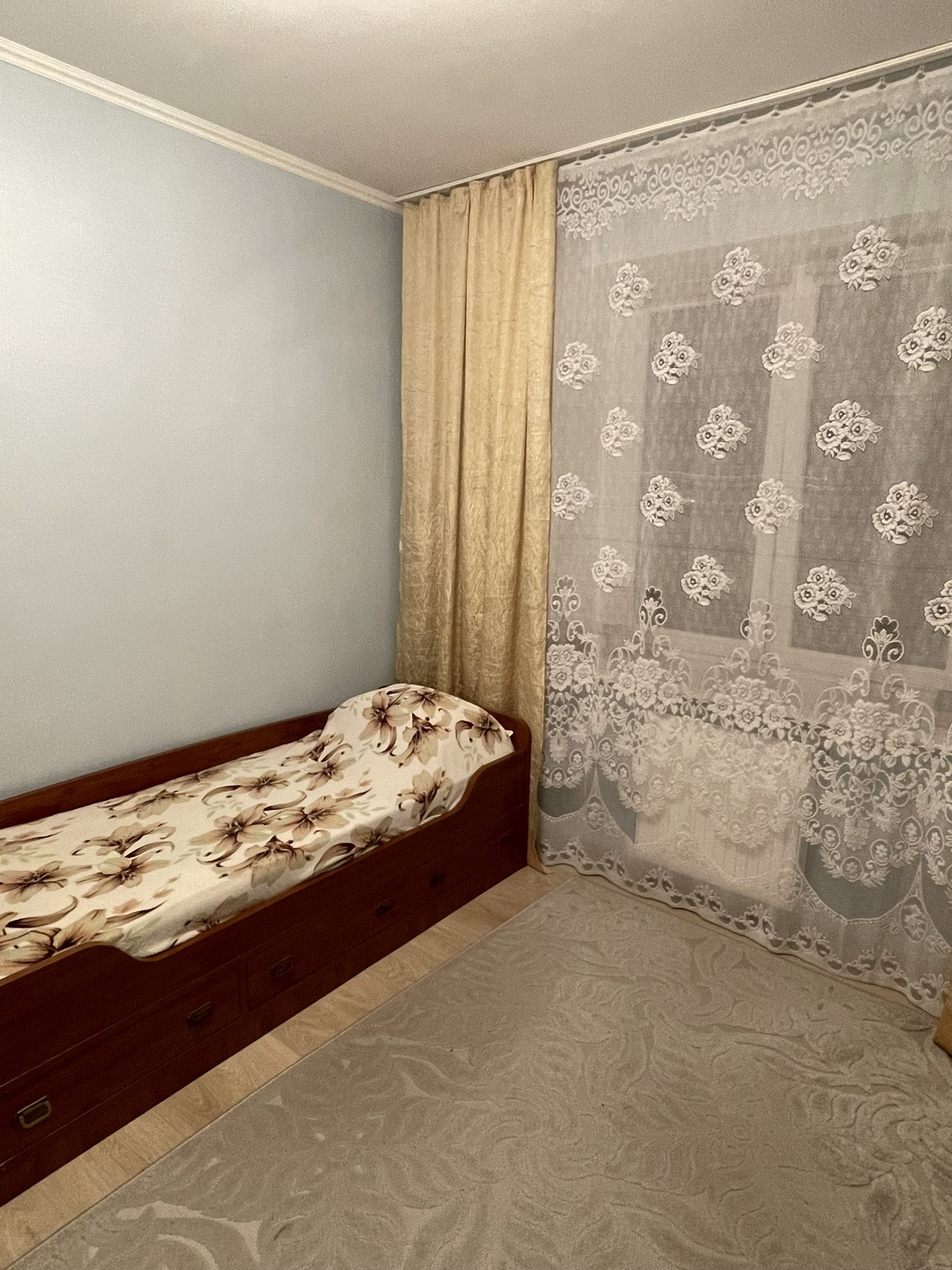Автономное отопление (горячая вода будет всегда!). Присутствует все, что нужно для жизни: посуда для готовки, посуда для сервировки, бытовая техника (стиральная машина, холодильник, микроволновка, плита, пылесос, духовка, телевизоры и пр.) и прочие приятные мелочи. Спальные места: раздвижной диван, односпальная кровать. В квартире есть застекленная лоджия. Изолированные комнаты, совмещенный санузел.