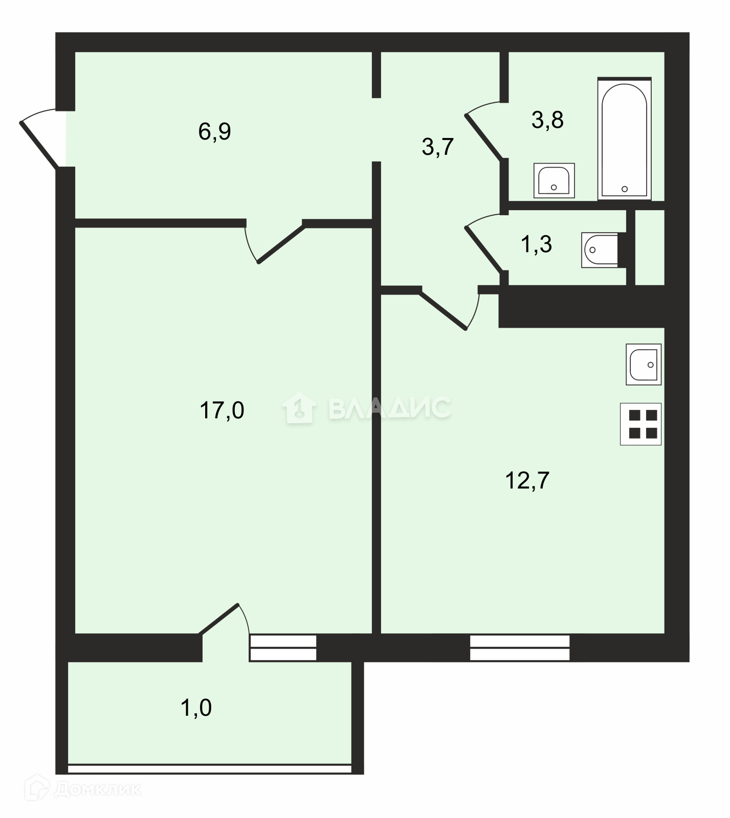 Площадь кухни 12.7 м2
