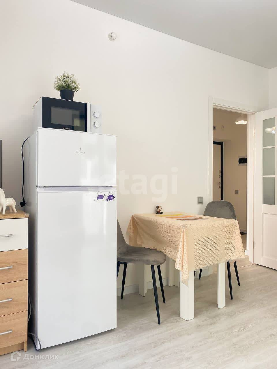 • Кухня укомплектована всей необходимой бытовой техникой: холодильник, плита, стиральная машина, микроволновка, электрочайник и посуда.