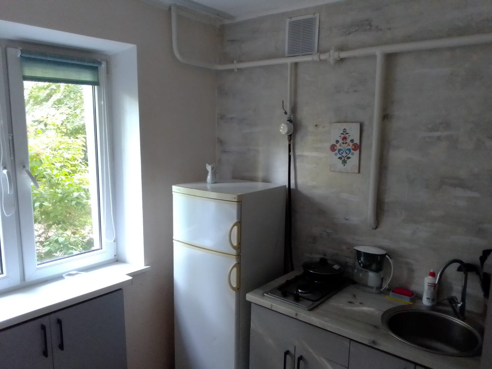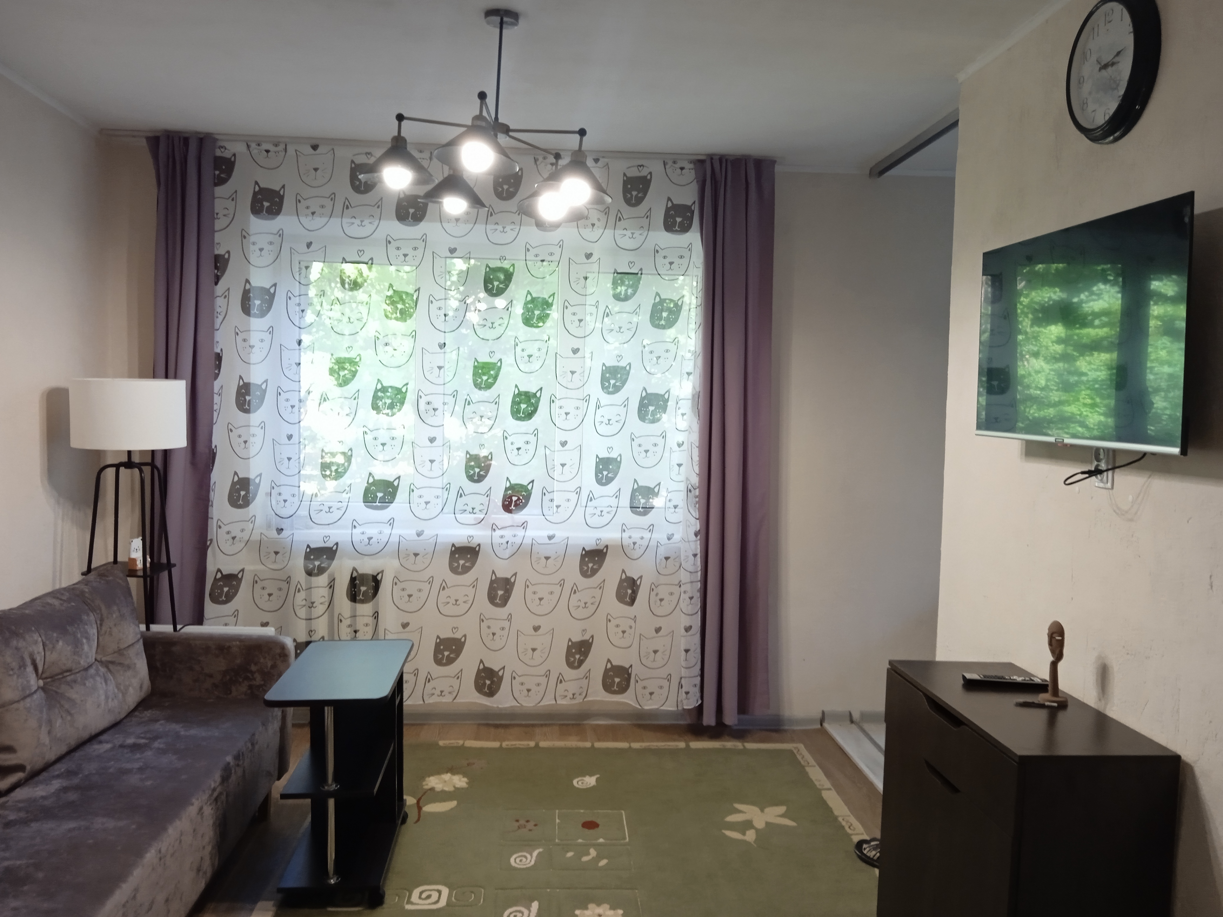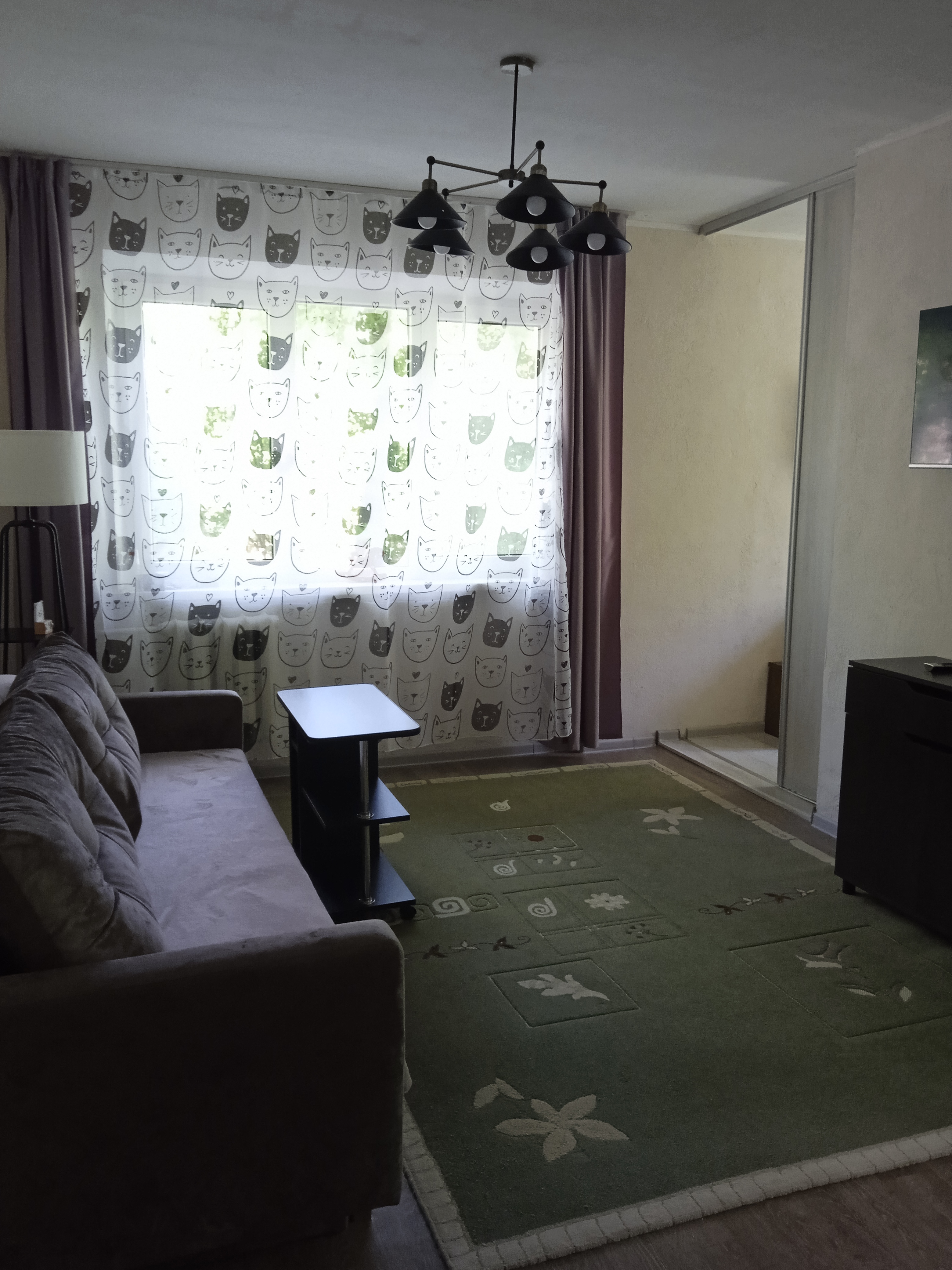 Новая мебель и новая современная бытовая техника (микроволновка, холодильник, стиральная машина, два смарт-телевизора, эл. чайник), вай-фай. Высокий 1-й этаж (окна выше человеческого роста).