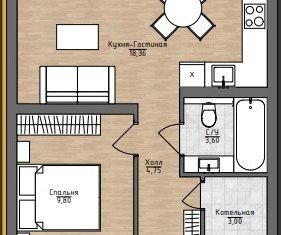 Общая площадь: 42 м2