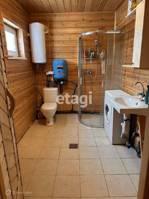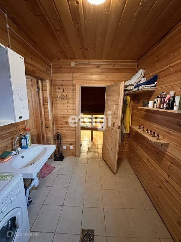 В доме есть деревянная сауна, санузел, теплые полы в сауне и санузле, электричество, водопровод, канализация. Также на участке имеется собственная скважина глубиной 36 метров, а под домом расположен небольшой погреб.