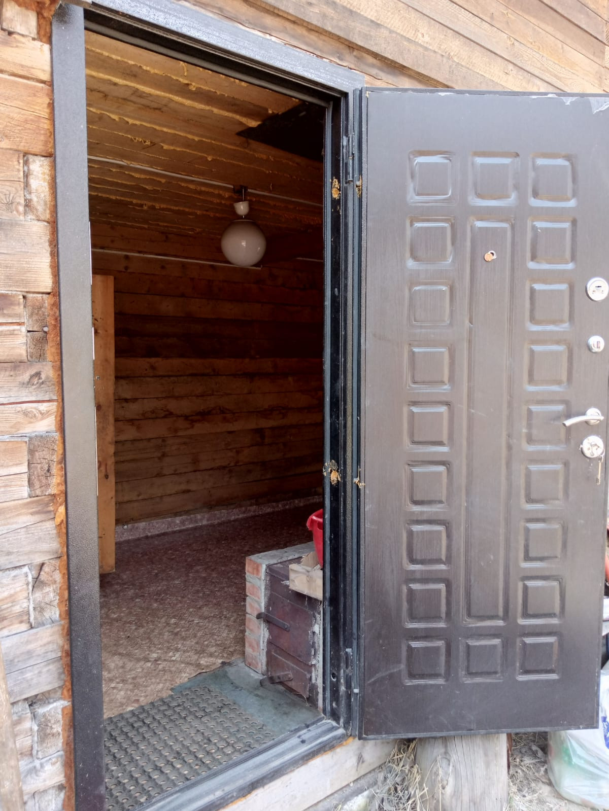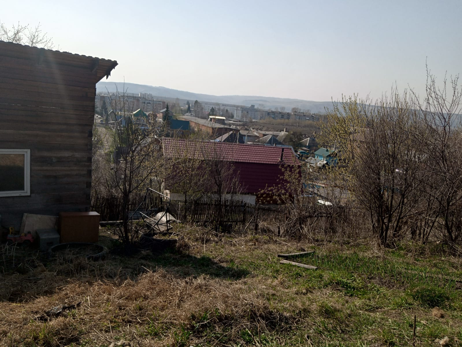 Отсыпана площадка под заезд машины. Забор  из профлиста.