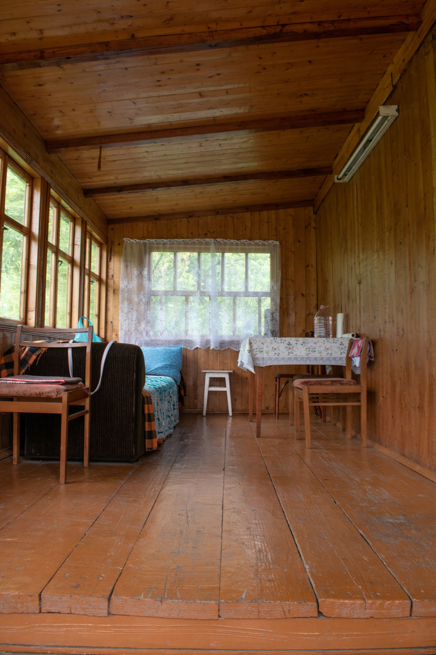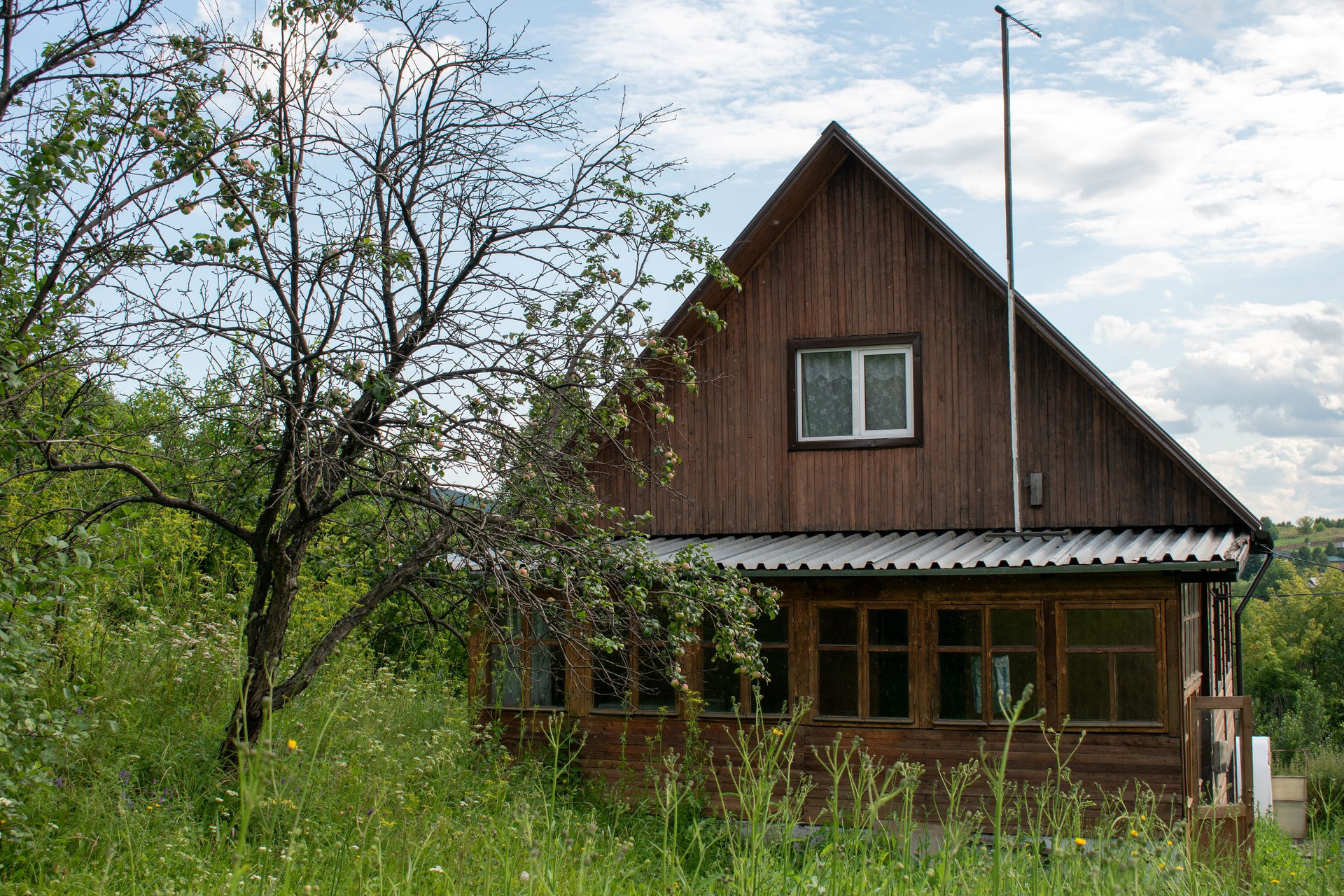 Баня объединена в одно строение с летней кухней, дровяником и уборной.