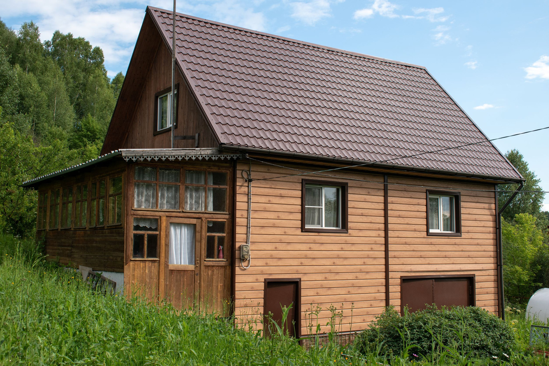 Дом в посёлке Шушталеп, частный сектор, два этажа и подвал. Прописка. Возможна продажа с участием материнского капитала. Дом из бруса, облицован металло-сайдингом, крыша из металло-черепицы. На первом этаже 3 комнаты и кухня, на втором одна большая комната. На кухне имеется слив воды. Отделка вагонкой и лаком. Есть мебель. Первый и второй этажи - печное отопление, веранда не отапливаемая, в цокольном этаже гараж и погреб. Пластиковые окна REHAU. Есть баня, летняя кухня и хозблок. Теплица 3х6 м, из поликарбоната. На территории посажены яблони и вишни. Есть свой колодец с водой, в дом вода не заведена, слив на кухне. Много зелени и деревьев вокруг. Минимум соседей. Строения в собственности, земля 10 соток в собственности, 20 соток в долгосрочной аренде. Документы есть.