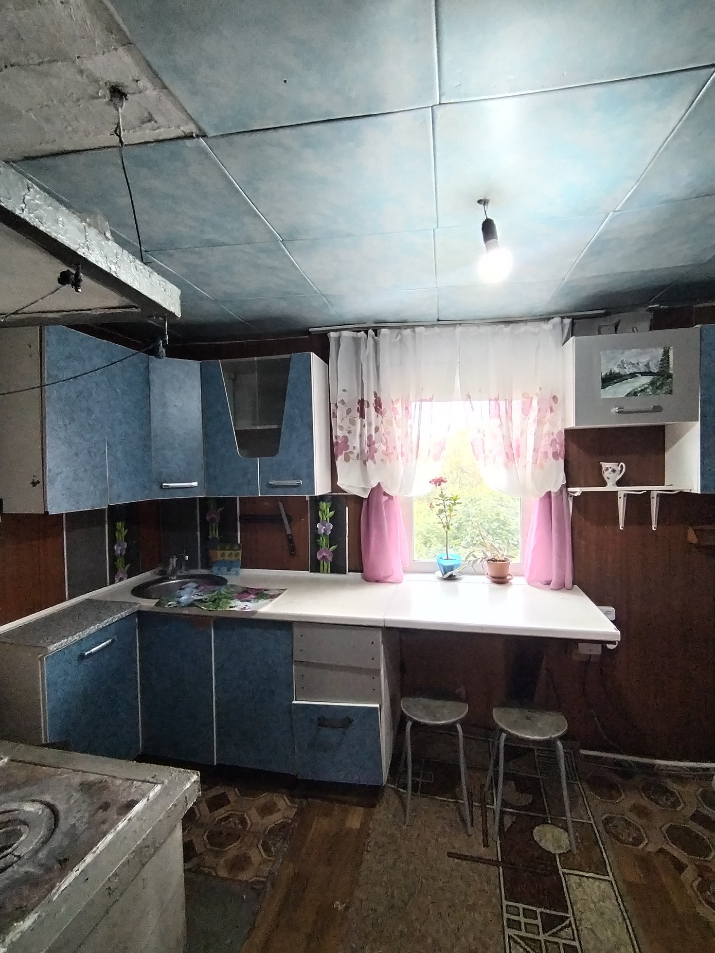 Есть возможность сделать ремонт на крыше, и получится 2-х этажный дом. Площадь позволяет.