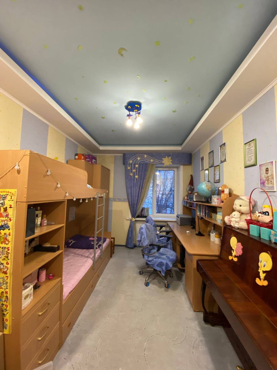 Продаётся 3-х комнатная квартира в центре г. Калтан 81,5 м2, с хорошим ремонтом, полностью обставлена мебелью, очень удобная планировка: два окна выходят во двор, два на пр. Мира (с балконами), большой коридор и просторная кухня 13 м2, в ванной комнате есть возможность установить душевую кабину (все коммуникации подведены). Во всех комнатах потолки из гипсокартона, два балкона с остеклением. Кладовая комната, оборудована под гардероб В подъезде чисто и уютно, недавно сделан ремонт. Во дворе с парковкой машины нет проблем, так же во дворе дома установлено видеонаблюдение. В общем всё есть для комфортного проживания, заходи и живи.