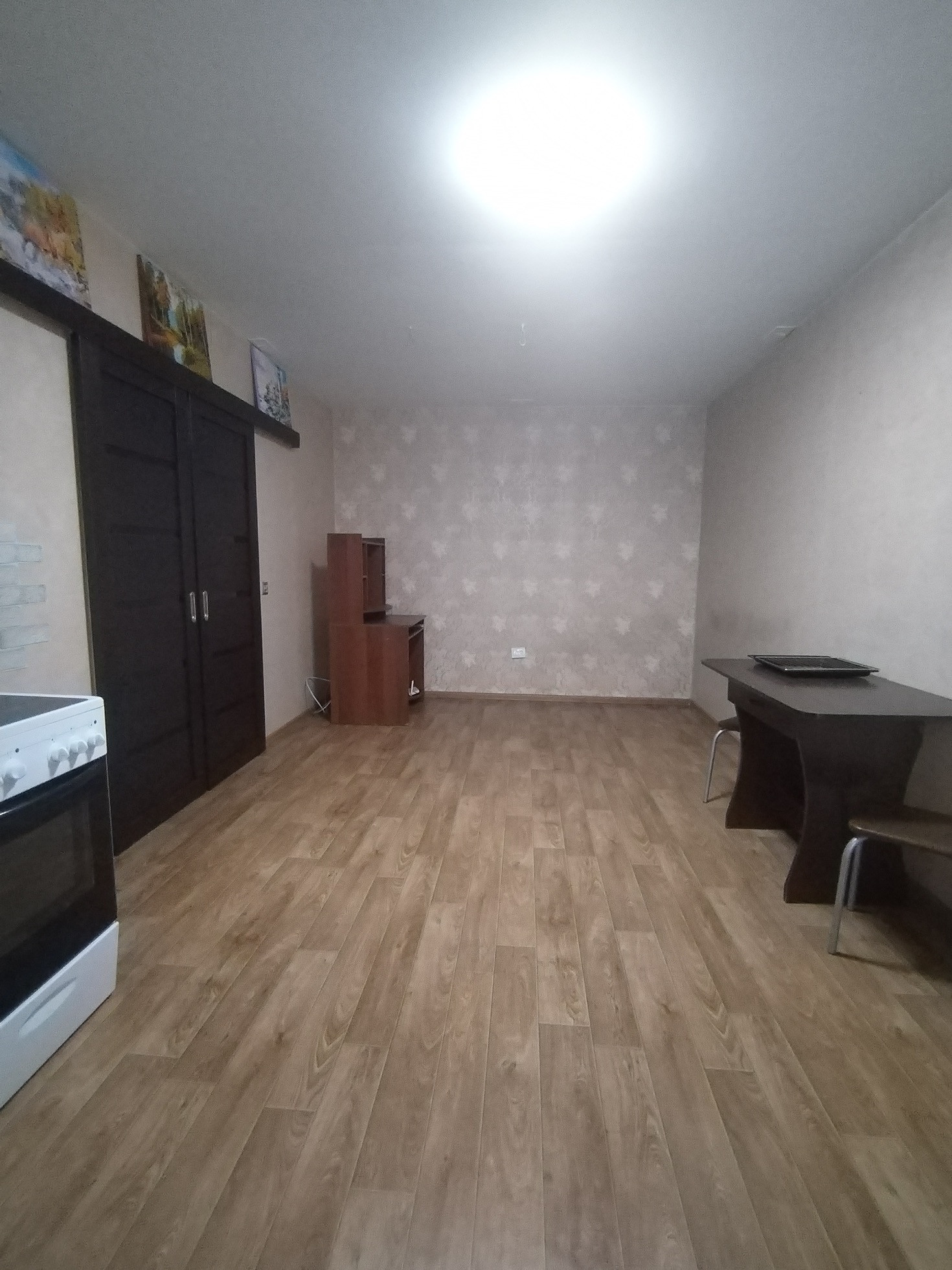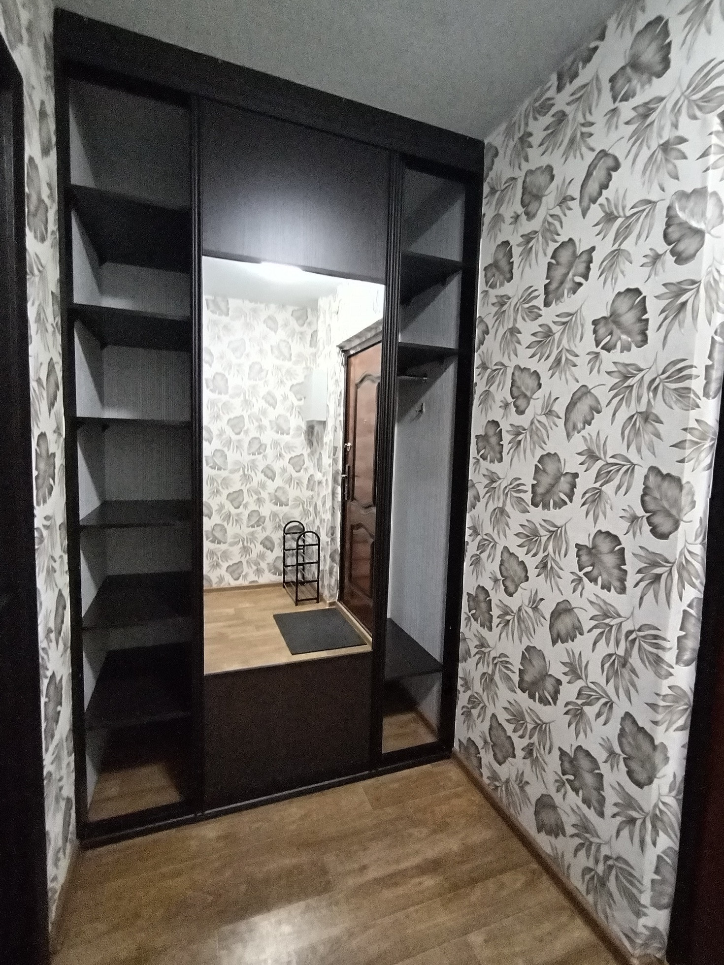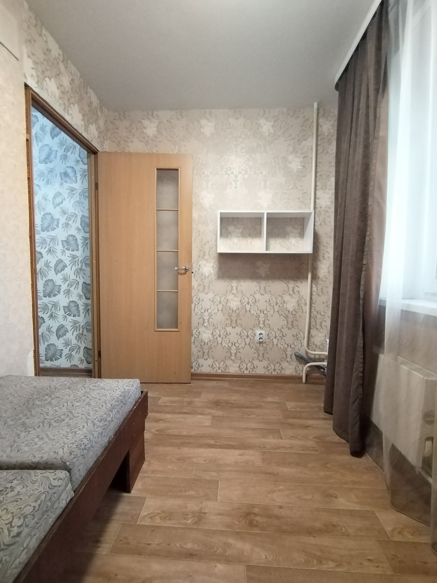 На полу линолеум, на стенах обои.
