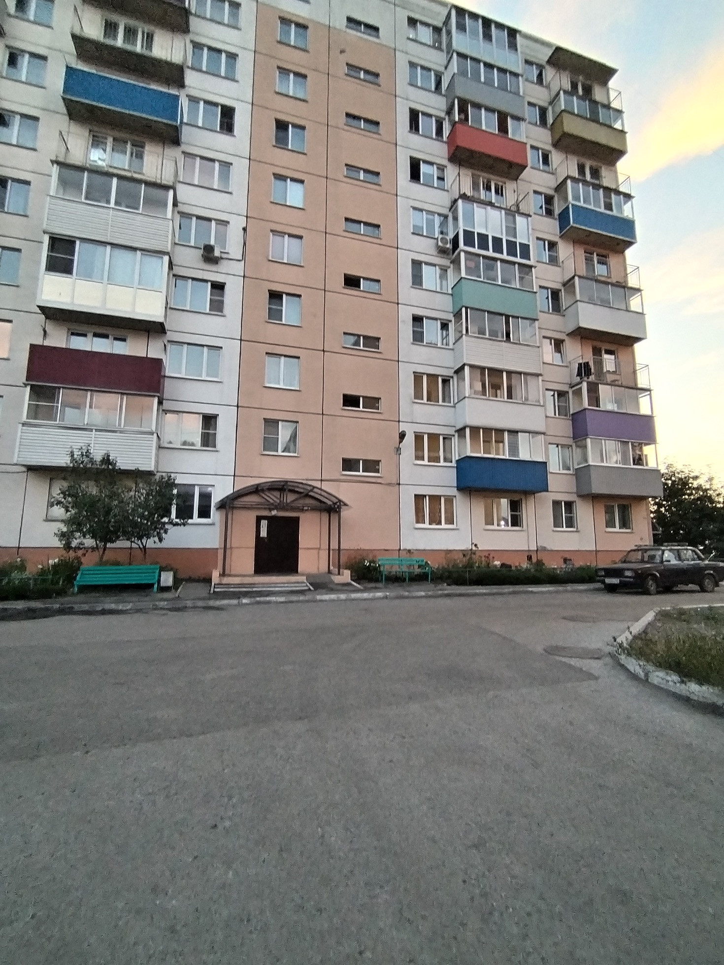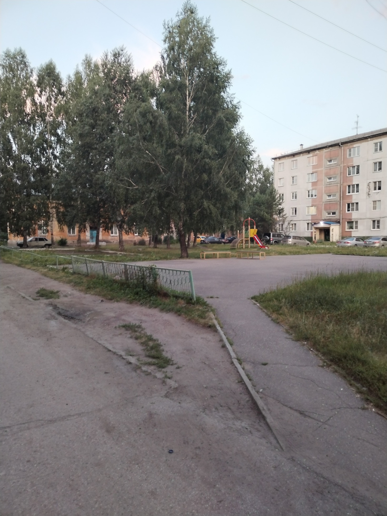 Во дворе дома имеется большая парковка для машин и детская площадка.
