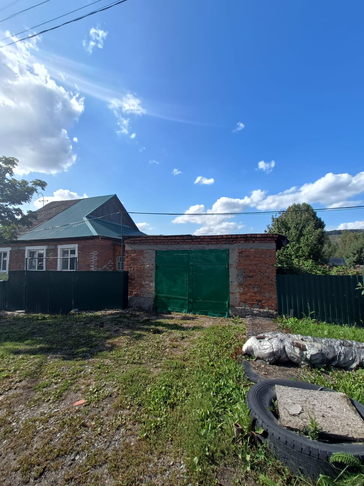 1. Большой дом, 3 комнаты, ванная, туалет внутри дома, есть баня, гараж, стайки и другие хоз сооружения.