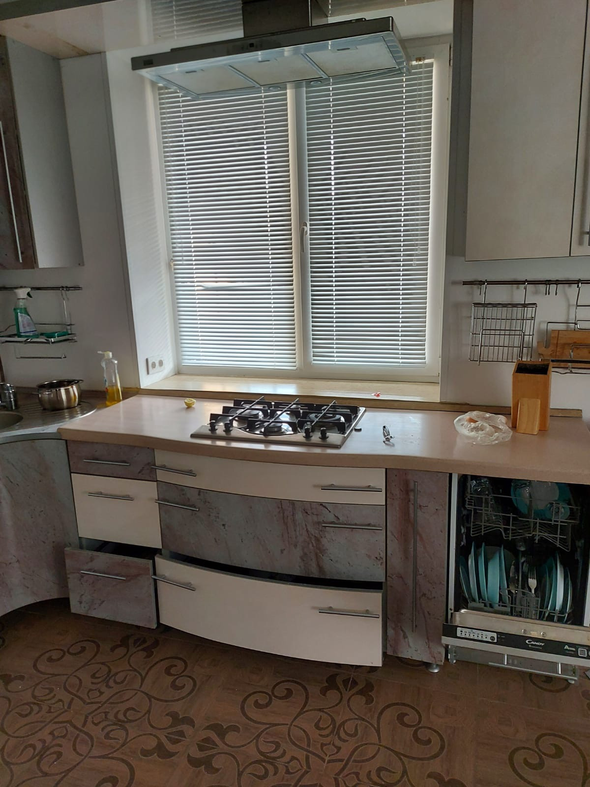 Из техники- холодильник, ТВ, плита, посудомойка, стиральная машина.