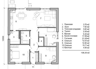 Общая площадь: 108 м2