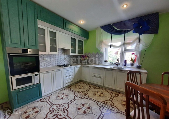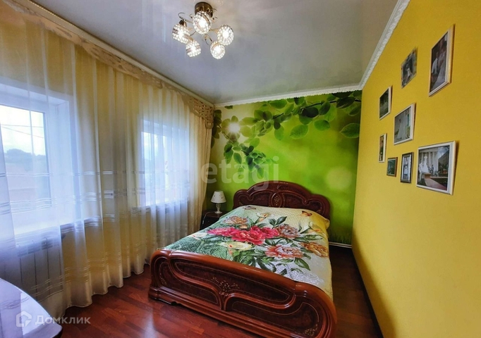 В доме три спальни, две отдельные и одна проходная. Два входа в дом и две отапливаемые прихожие, одну из которых оборудовали под рабочий швейный кабинет (его можно приспособить для любого бизнеса - парикмахерские услуги, маникюр и т.д. или сделать жилую комнату). Из гостиной выход в кабинет и на кухню. Кухня примерно 25 кв.м, современный гарнитур, есть вся необходимая техника, включая встроенную посудомоечную машинку. Так же на кухне рабочий камин.