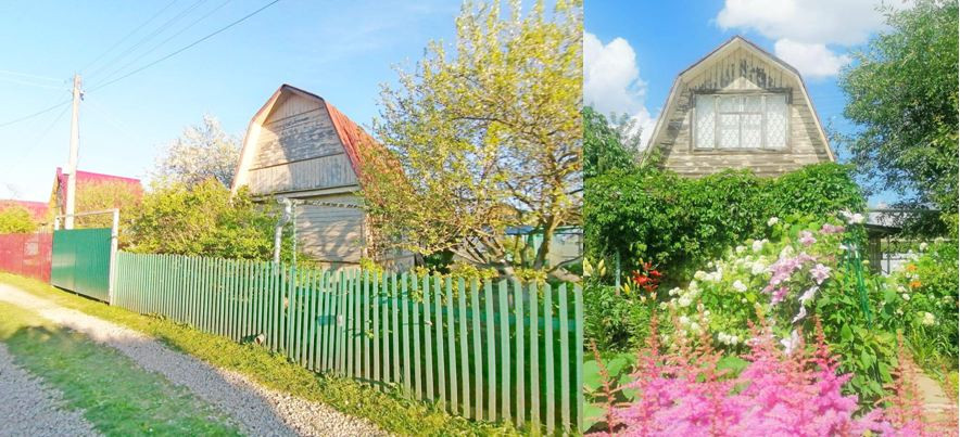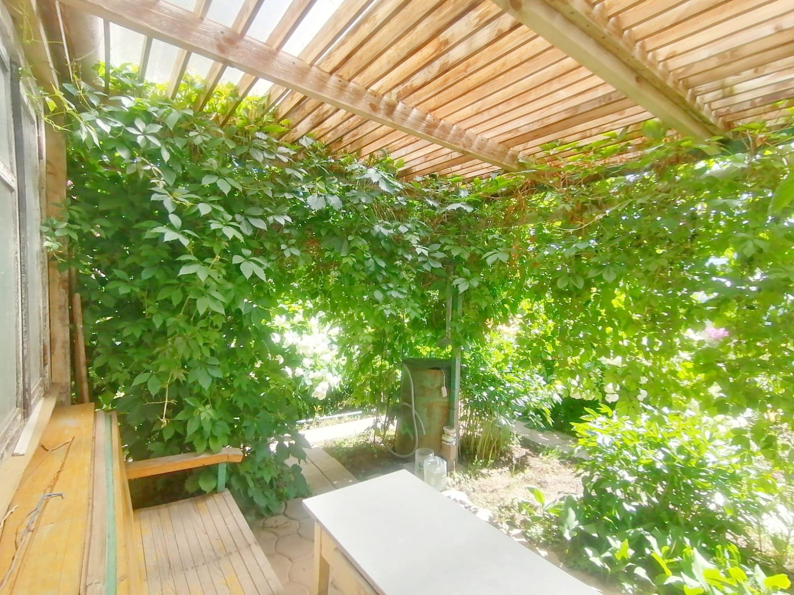 Домик 24 кв.м, два этажа, с примыкающей к нему беседкой под вьющимися растениями. Имеется место для парковки авто рядом с домиком.