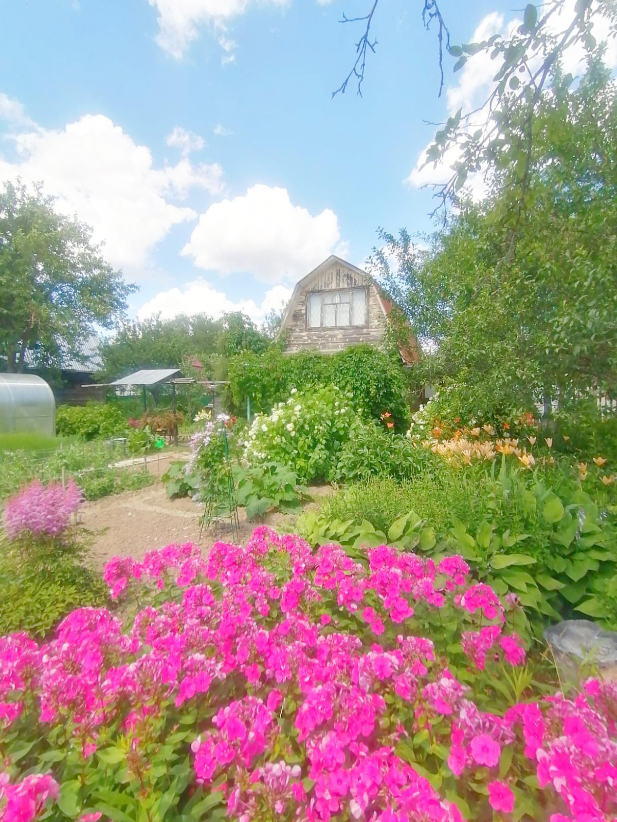 Участок 4.5 сотки, обработан, в полном порядке. Смородина, малина, жимолость (!!!), сливы, яблони, груша. Две хорошие новые теплицы для овощей, сарай, туалет, душ, стойка для мангала с защитой от дождя. Есть бокс для перегноя/компоста.