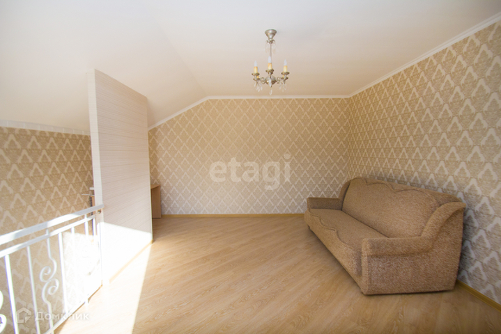 Дом построен на ленточном фундаменте из газобетонных блоков и облицовочного кирпича, ж/б перекрытия.