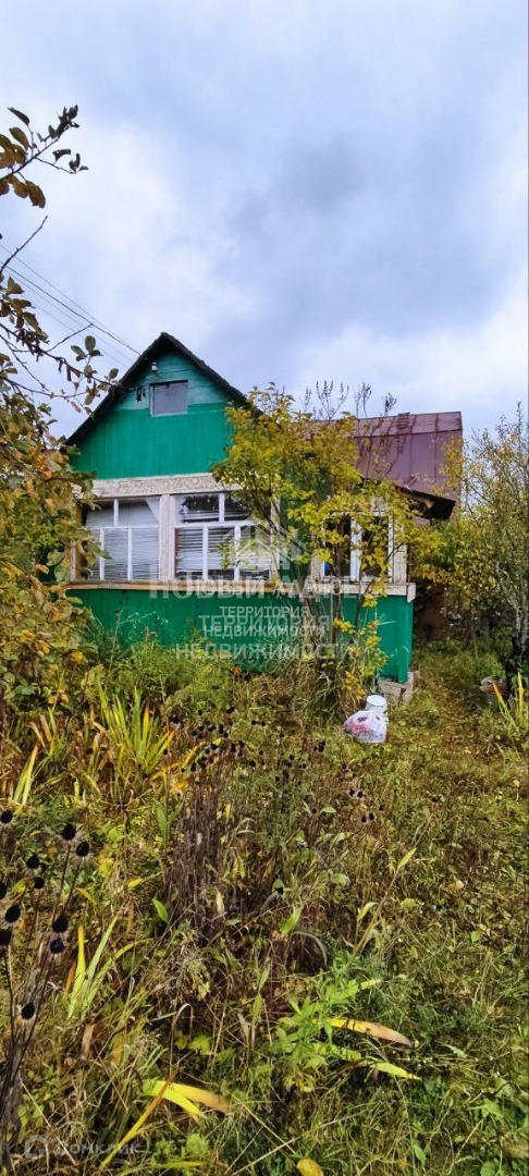 Дача в городе Калуга на участке 8 соток. Есть брусчатый домик, инкрустированный резьбой по дереву. В доме: комната, кухня, второй этаж и терраска.