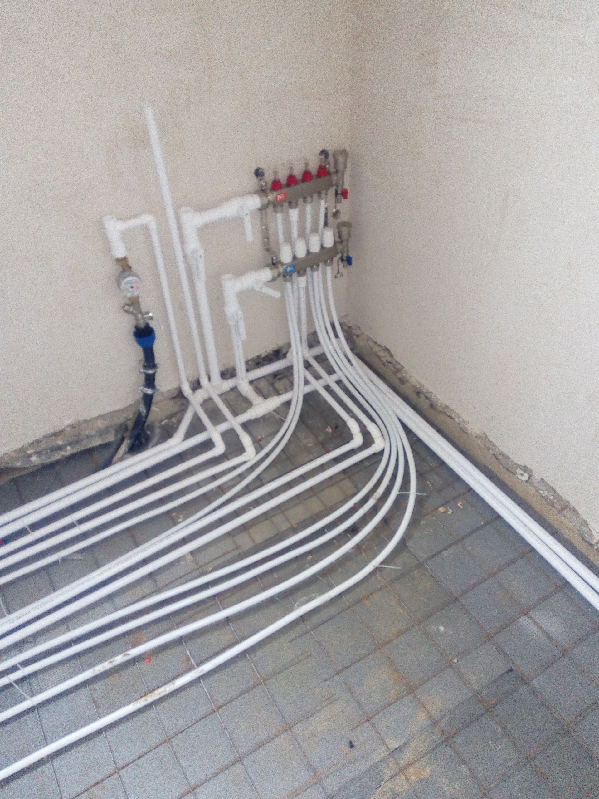 Разводка труб под индивидуальное отопление, теплые полы.