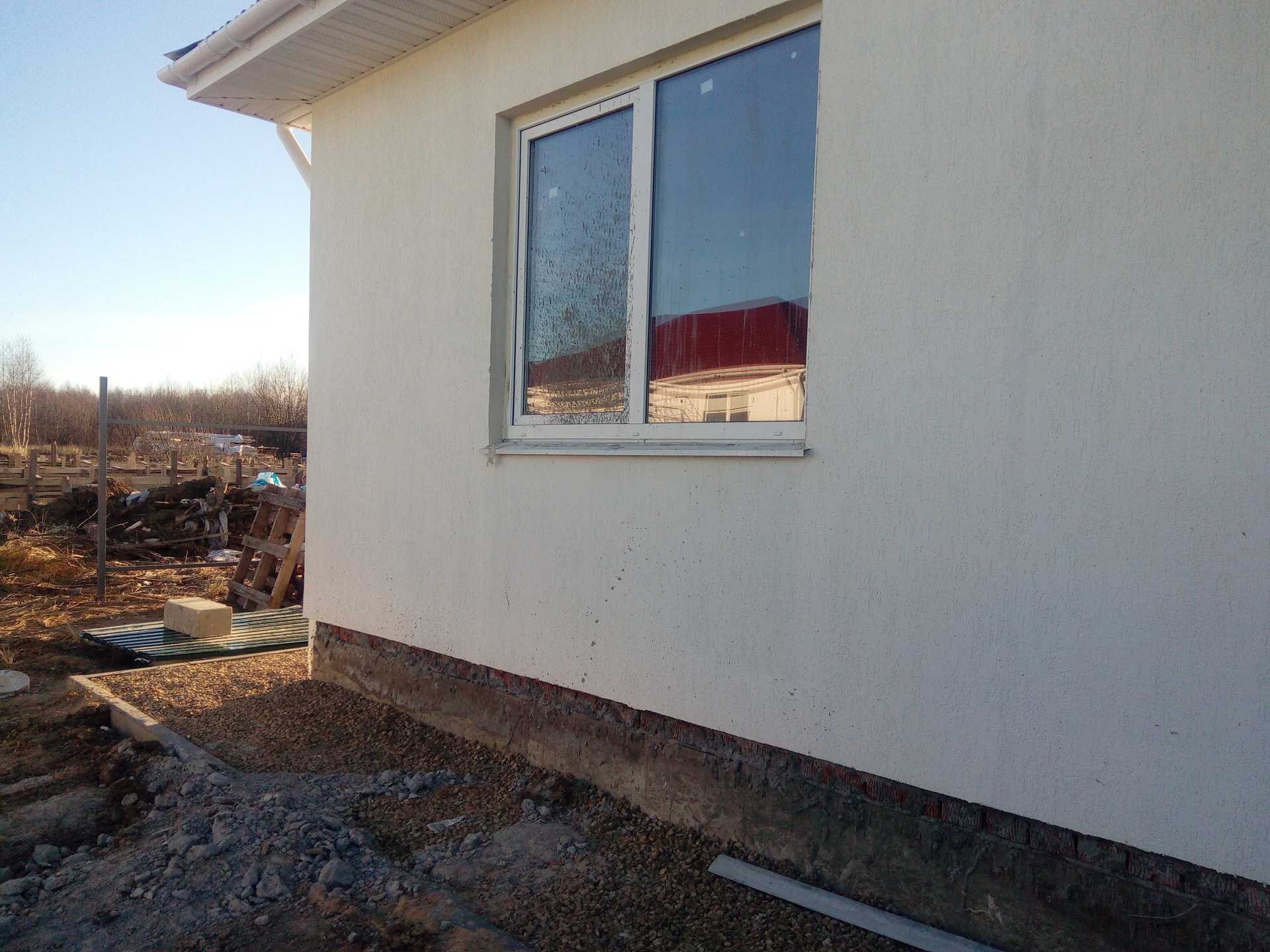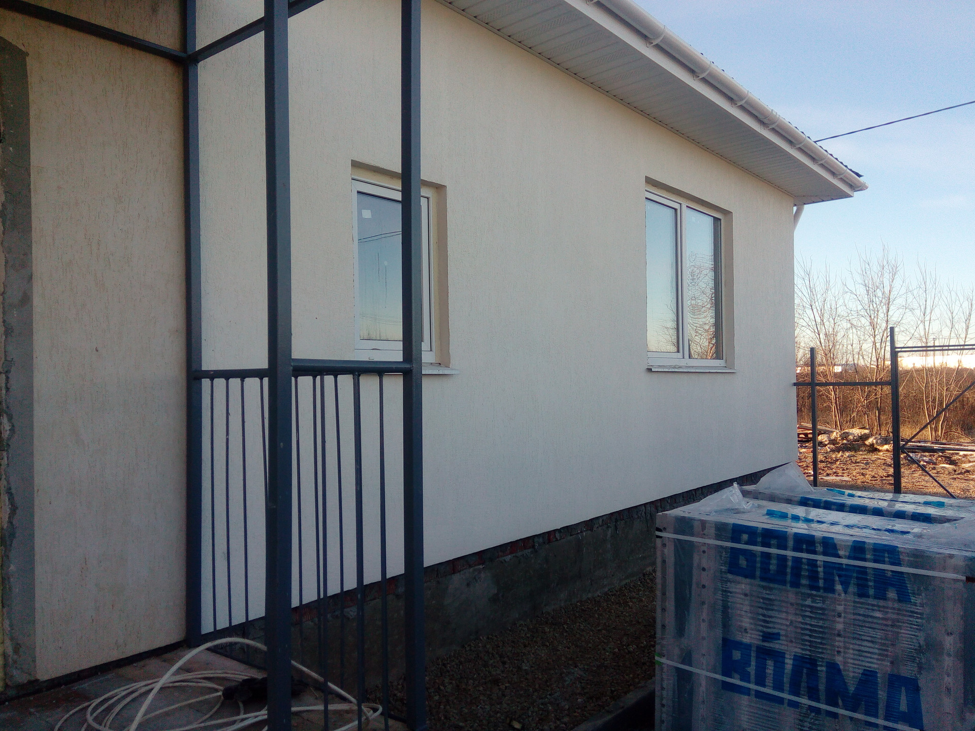 Стены снаружи оштукатурены.