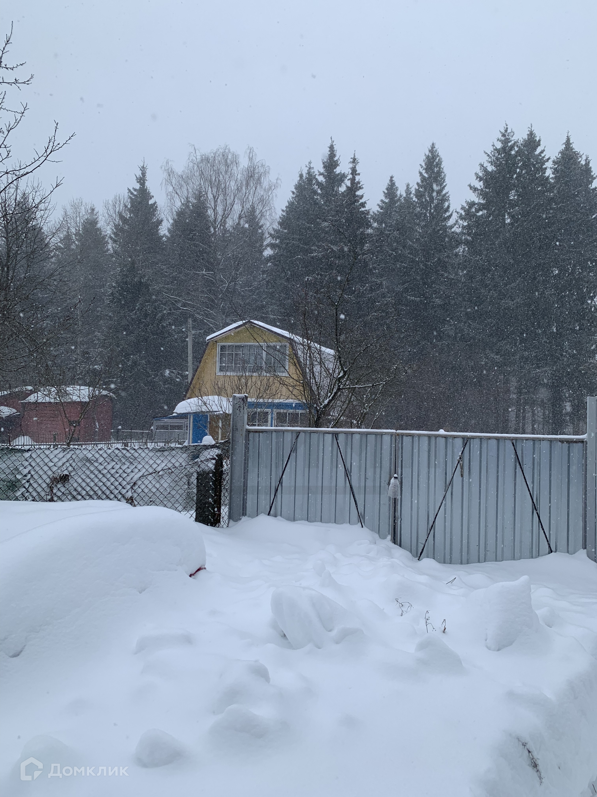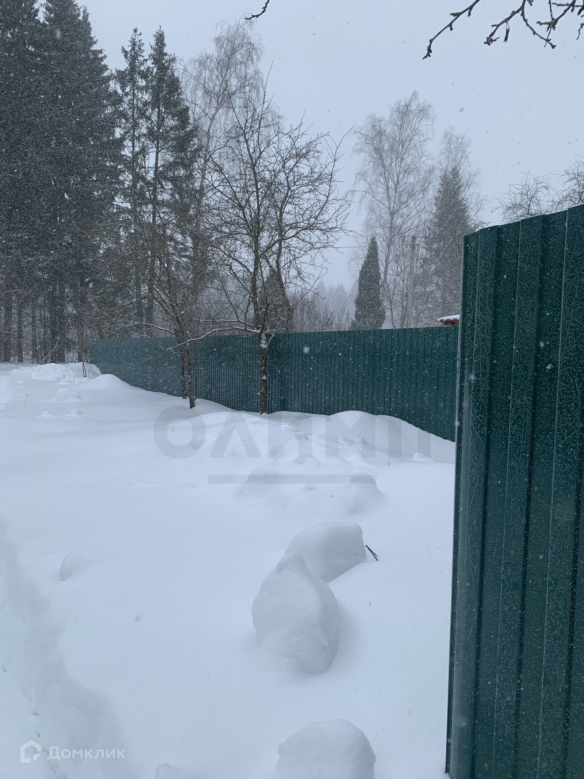 По периметру  с трехсторон участок огорожен сеткой рабицей, въезд огорожен профлистом, имеются ворота. Перед участком большая площадка для 5ти машин   Напротив участка имеется также площадка для 4-х машин.