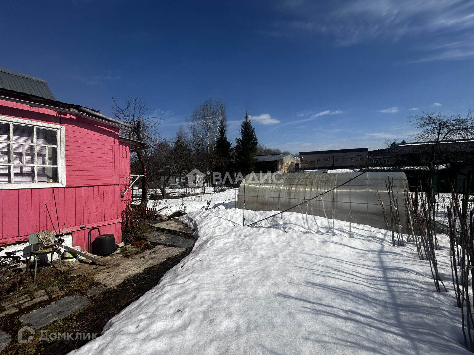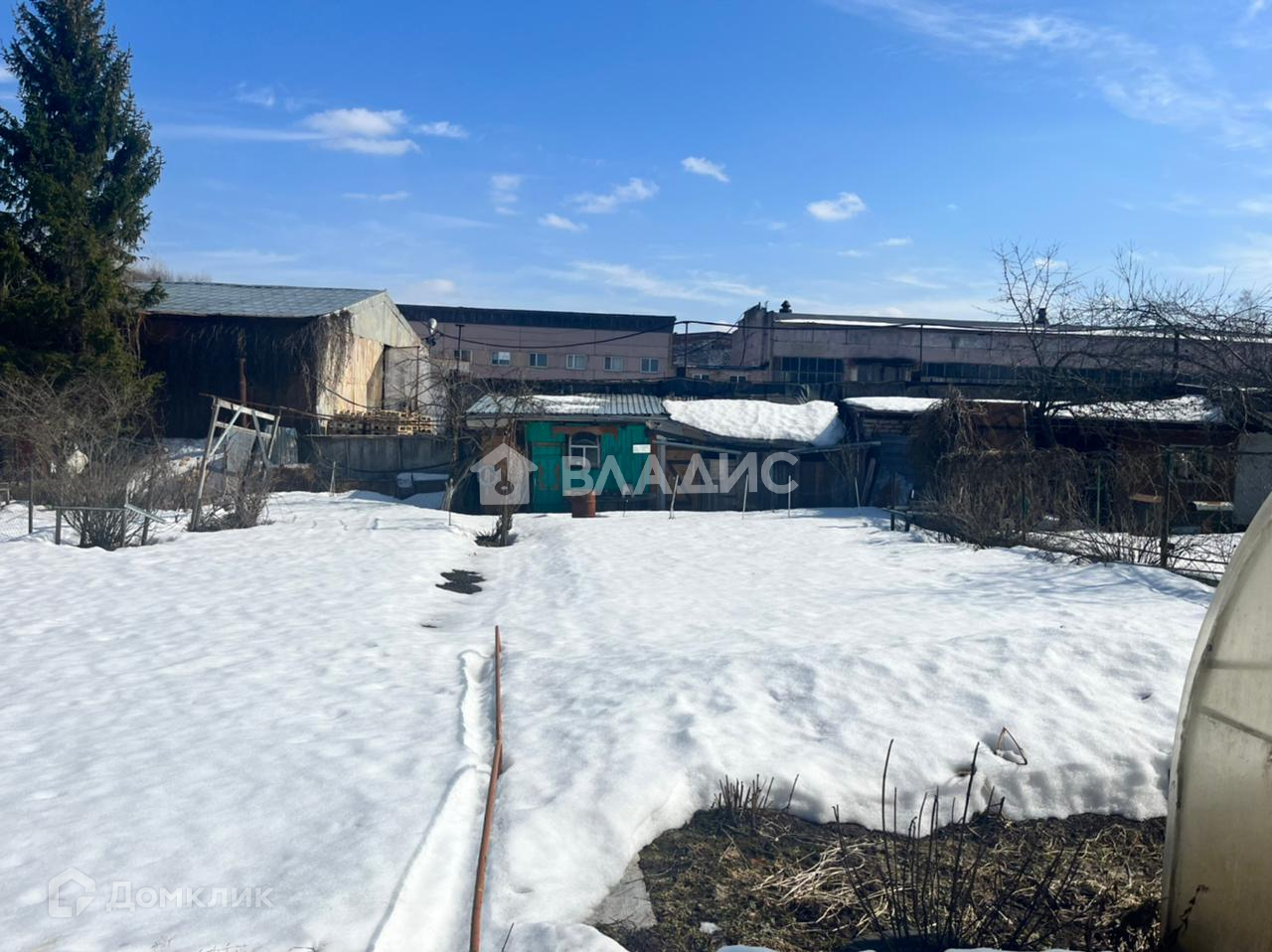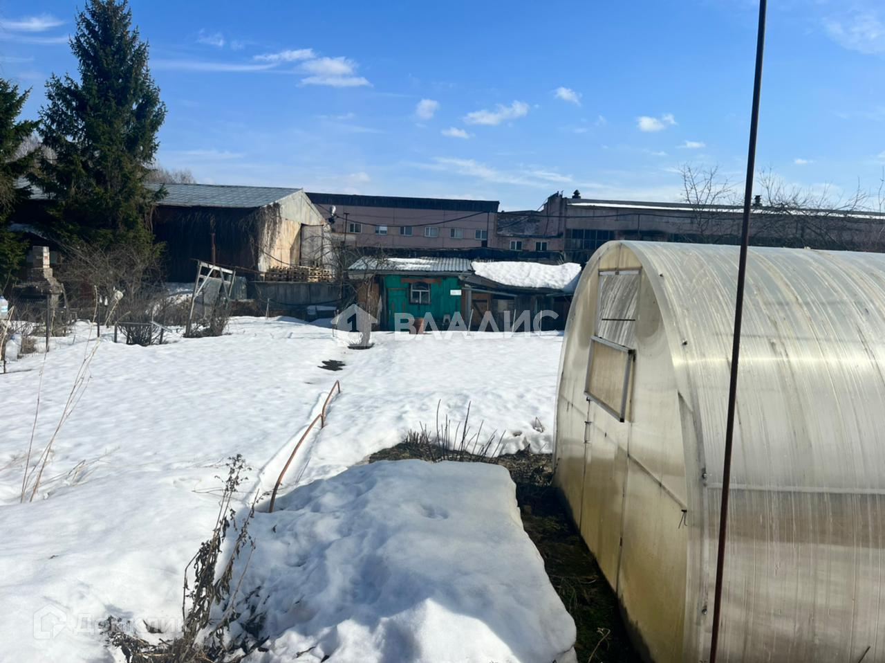 Участок площадью 5,86 соток, вытянутой формы. Ухоженный. Каждый год обрабатывается. Есть плодово-ягодные насаждения. Большая теплица. Сарай, туалет.