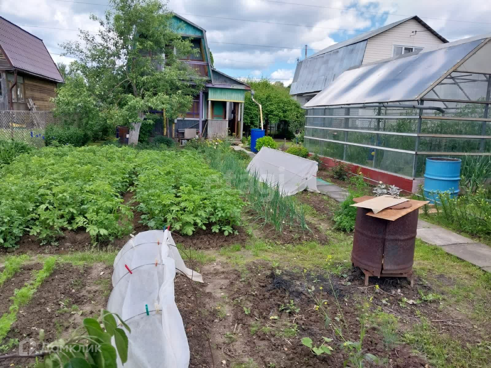 Сам дачный дом в очень хорошем состоянии , два этажа , кухонная и обеденная зона , 2 комнаты на втором этаже , 1 на первом , на втором этаже балкон с шикарным видом на участок .