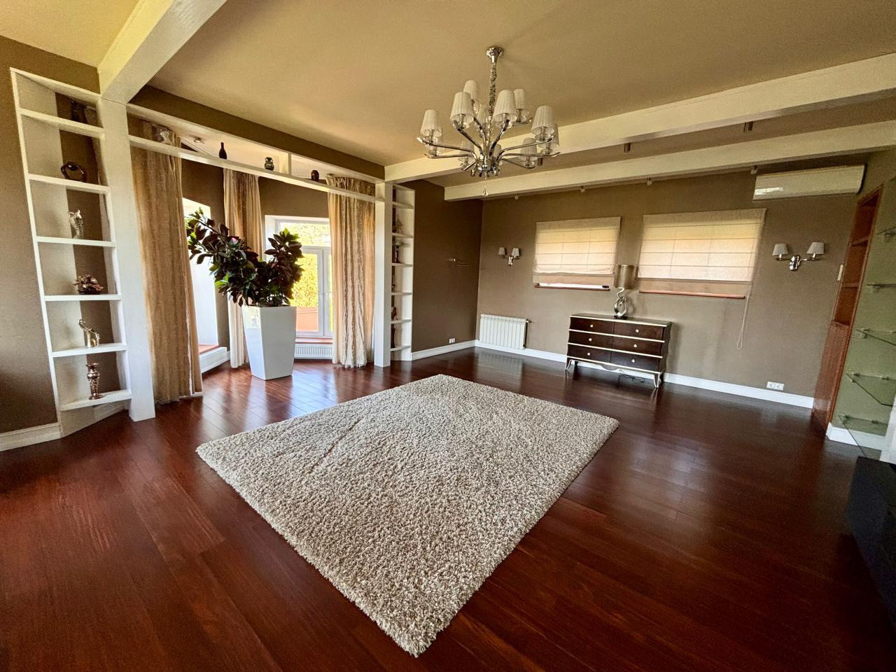 1-й этаж: холл, кухня-столовая (37 кв.м.), кабинет с библиотекой, с/у, постирочная, гардеробная, подсобные помещения, котельная.
