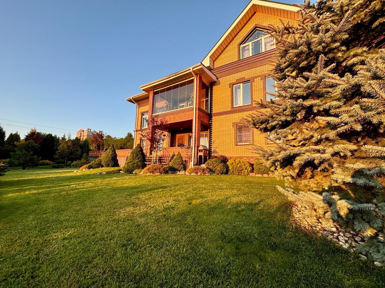 На участке 24 001 кв.м профессионально выполнен ландшафтный дизайн с геопластикой и использованием природного камня. Смонтированы системы дренажа и ливневой канализации. «Английский» газон с автоматической системой полива. Пруд с карпами Кои , декоративными карасями и водопадом. Тут, брабанты, несколько видов елей и сосен облагораживают зеленый участок.