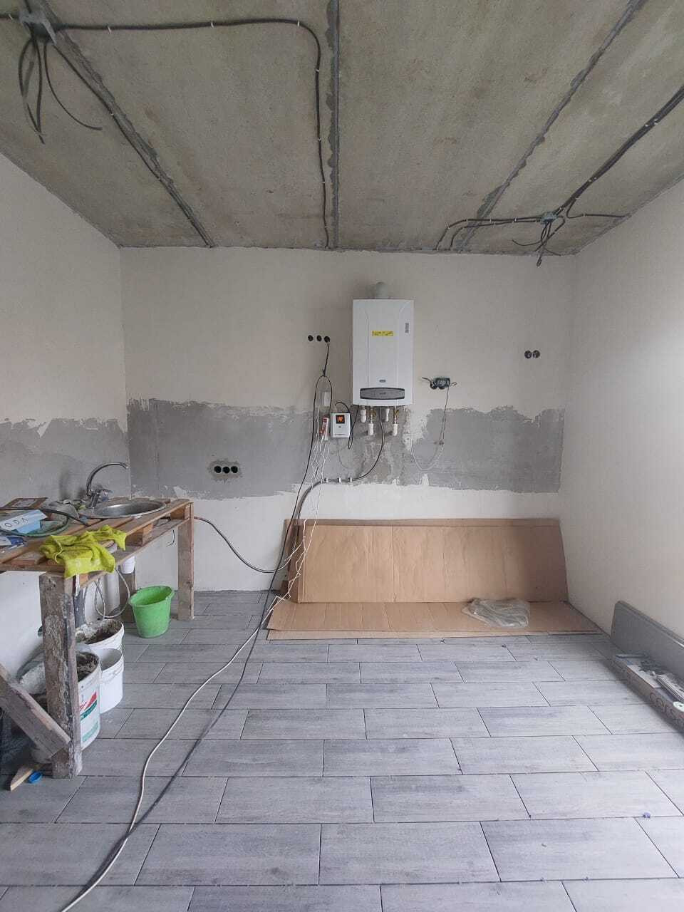 Жилой дом общей площадью 158 кв.м., все коммуникации в доме, газ подключен, установлен и подключен 2-х контурный котел, полностью разведена электрика, подключена система отопления. Стены оштукатурены, на первом этаже плитка. Вода центральная, канализация септик.