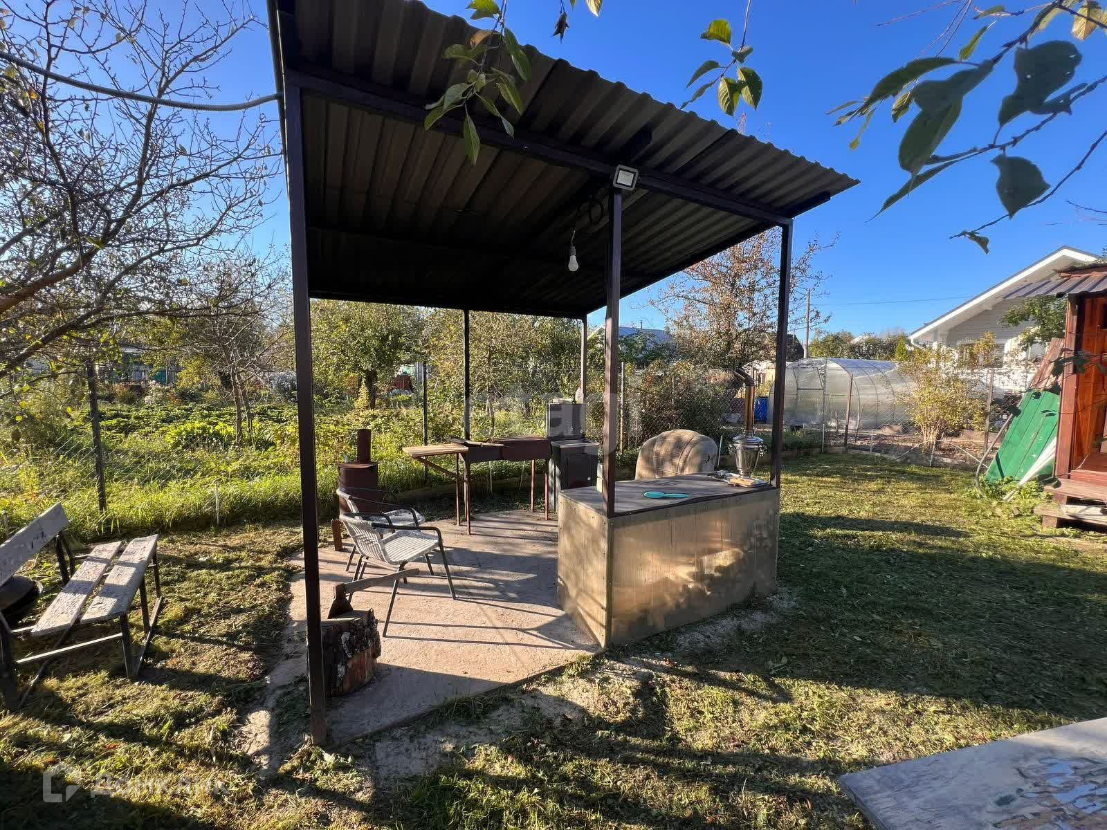 На территории участка также имеется домик для садового инвентаря, туалет, дешевая комната, навес с мангальной зоной, беседку с терасной доской на полу и вагонкой на стенах и потолке. Крыша беседки накрыта мягкой кровлей и застеклена современными пластиковыми окнами!