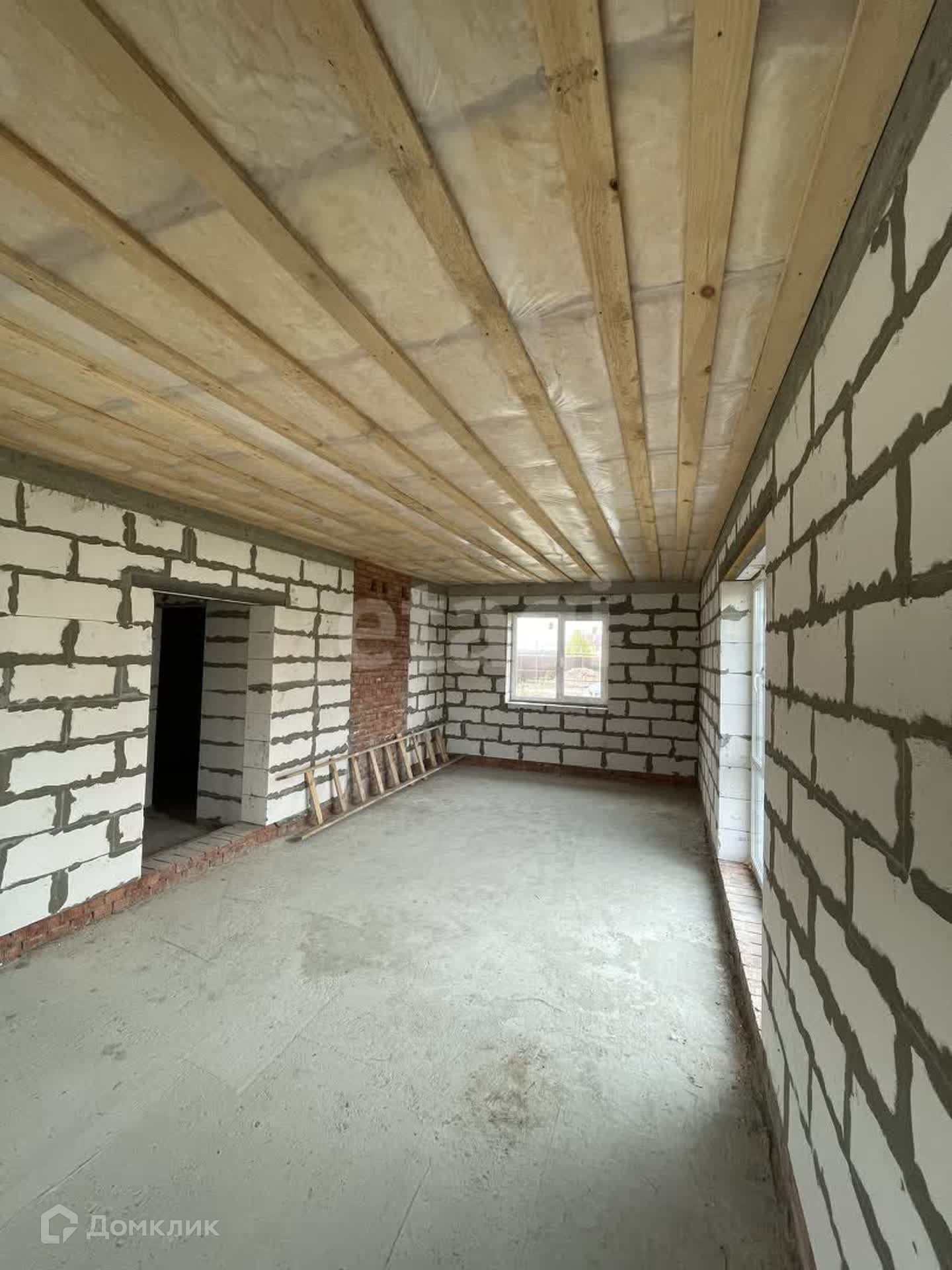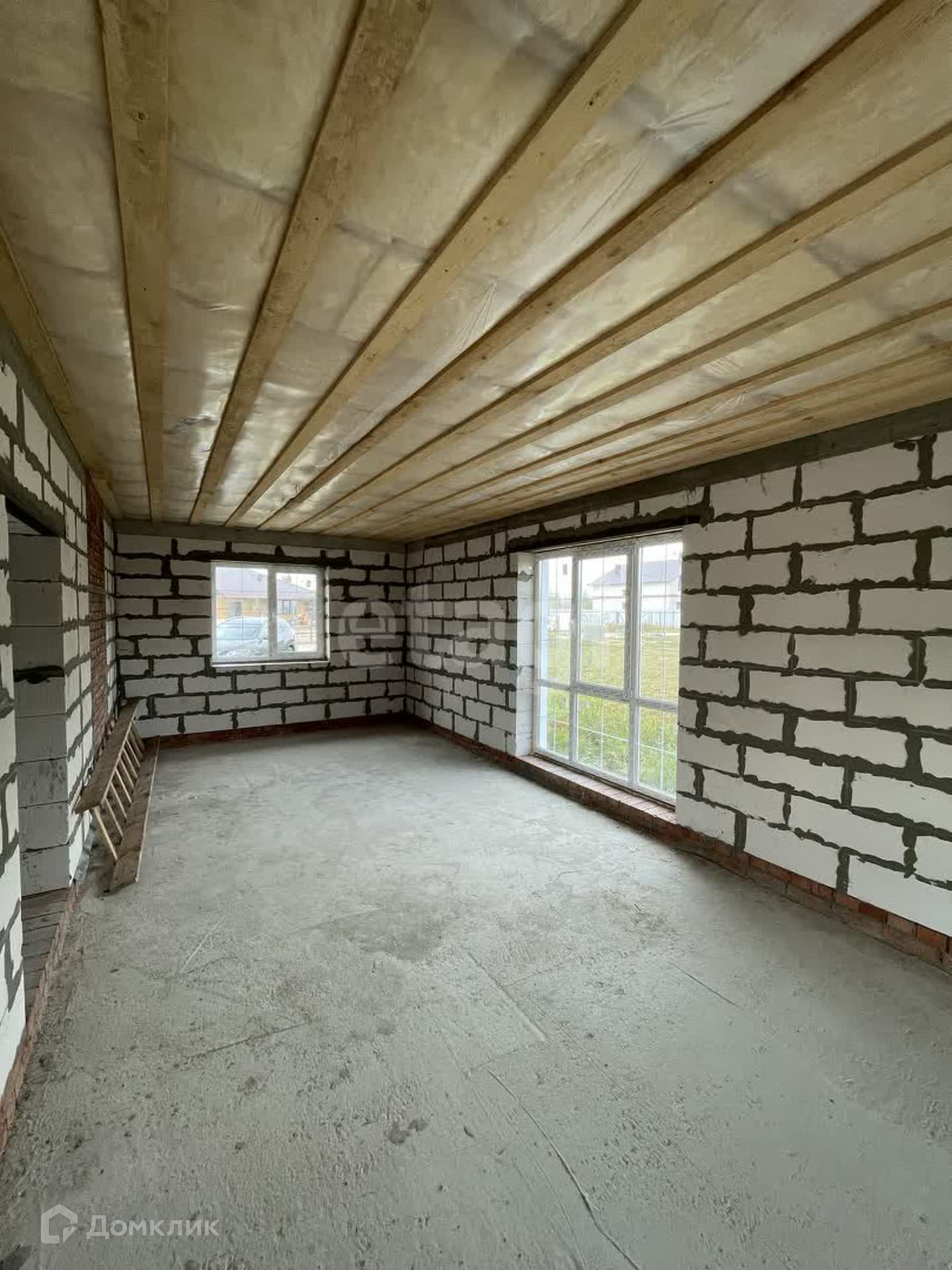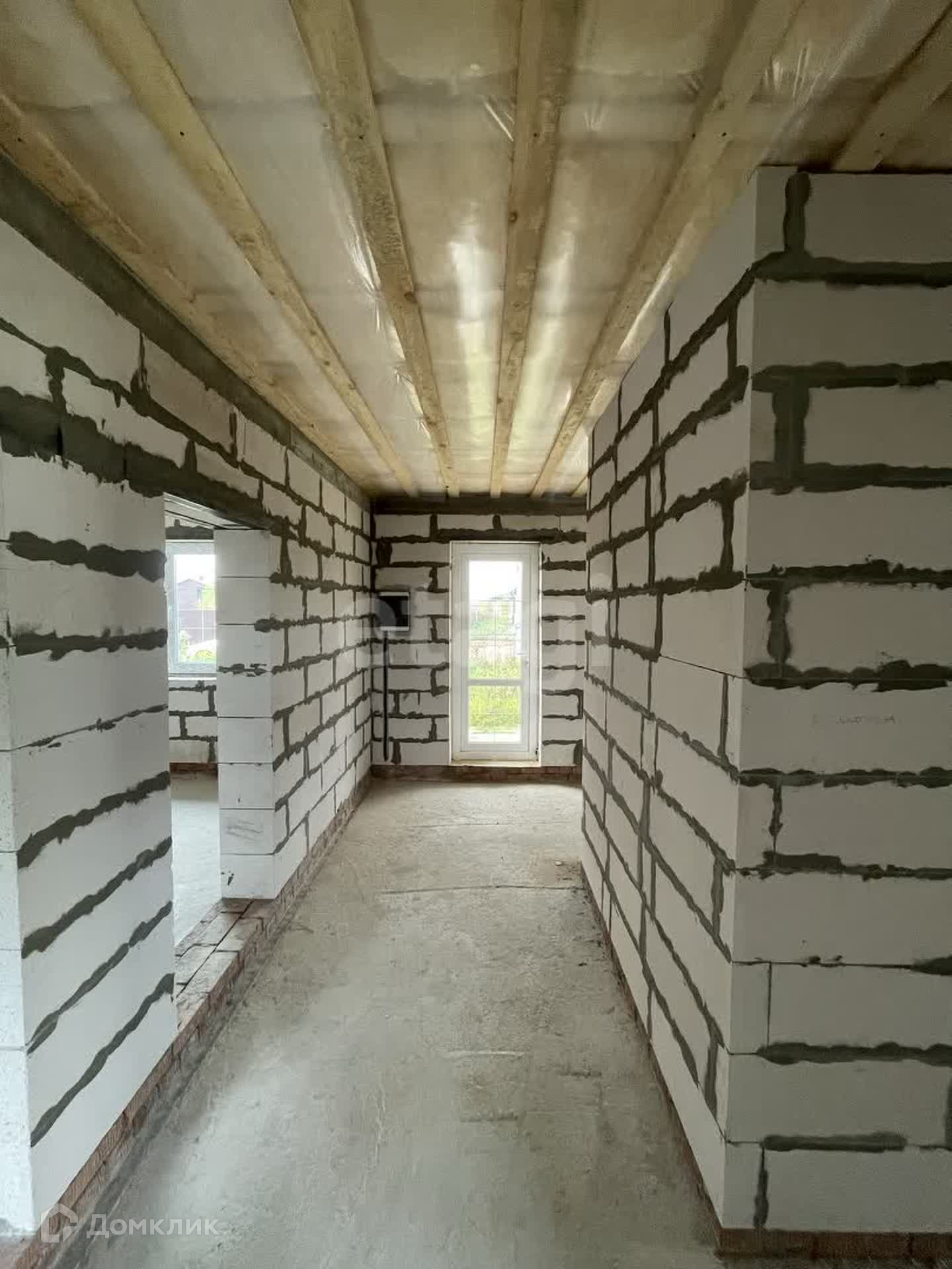 Дом построен из газоблока, утеплен и обшит стильными панелями, что придает ему современный и привлекательный вид.