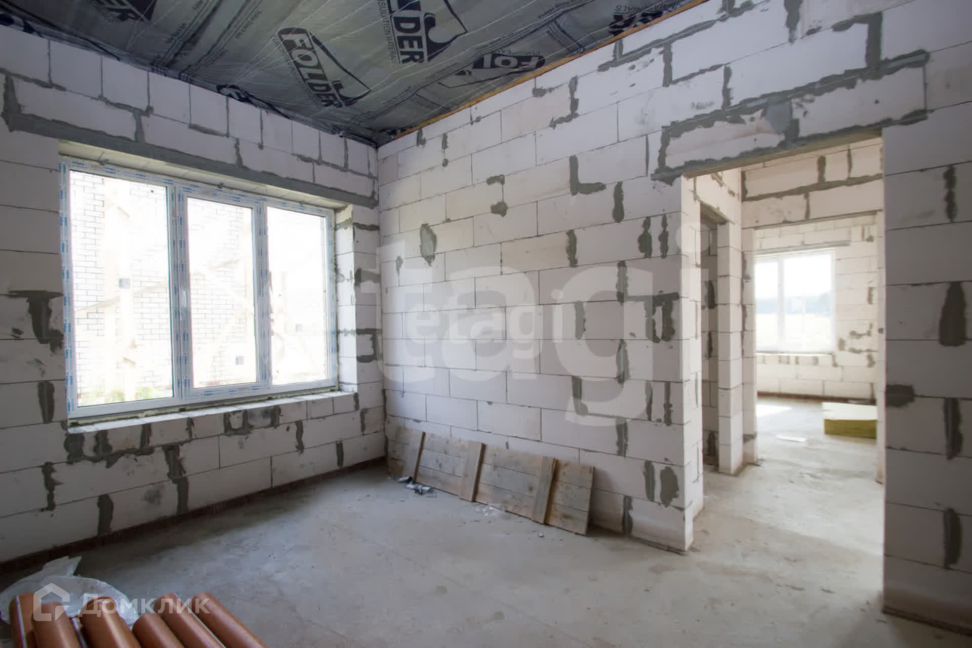 Стены дома из Газобетона, облицован Кирпичом Браер, внутренние перегородки толщиной 150 мм.