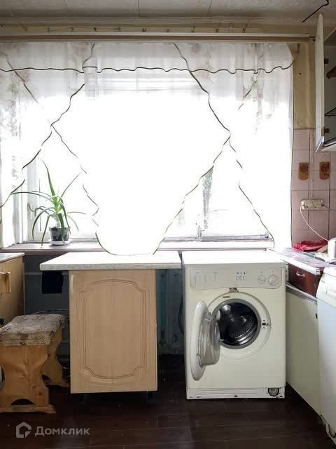 В КОМНАТЕ: подключенная стиральная машина, пластиковое окно, натяжной потолок, диван, шкаф, столик.