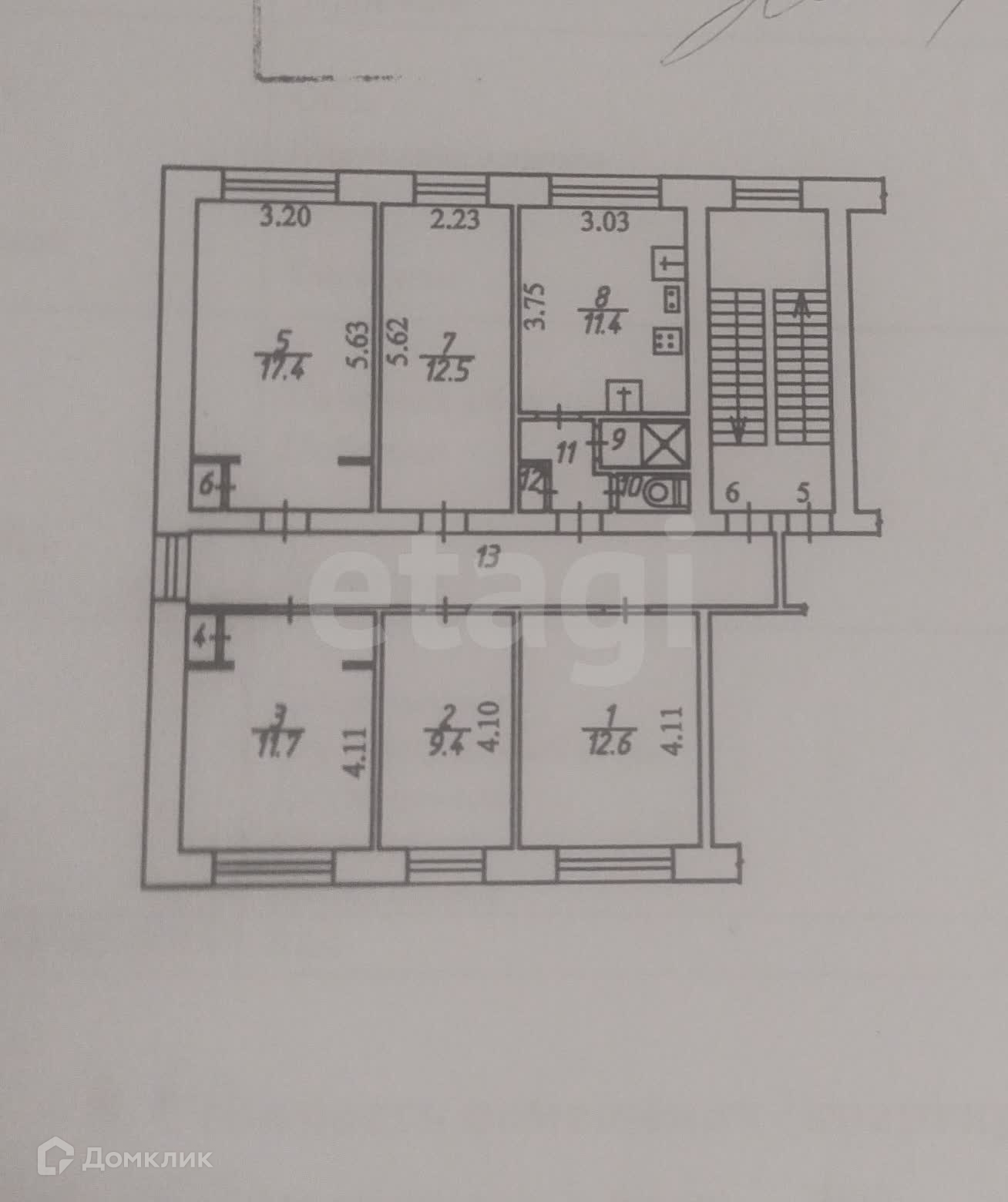 Кирпичный дом. Чистый подъезд. Средний этаж. Блок на 5 комнат.