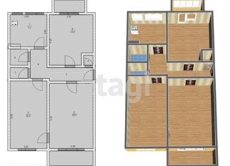 3-ком. квартира на продажу, 57.6 м2, Строительная улица, 1Г