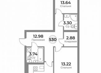 Двухкомнатная квартира на продажу, 47.8 м2, улица Космонавта Комарова, 37Б
