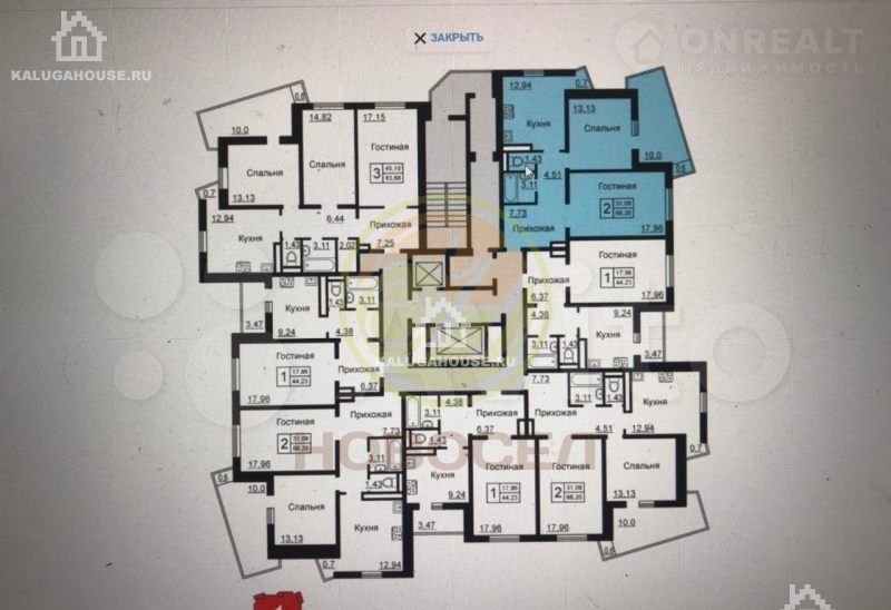 2-комнатная квартира, 66.5 м2, этаж 5 / 19, на продажу в Калуге, улица Анненки, 38к1