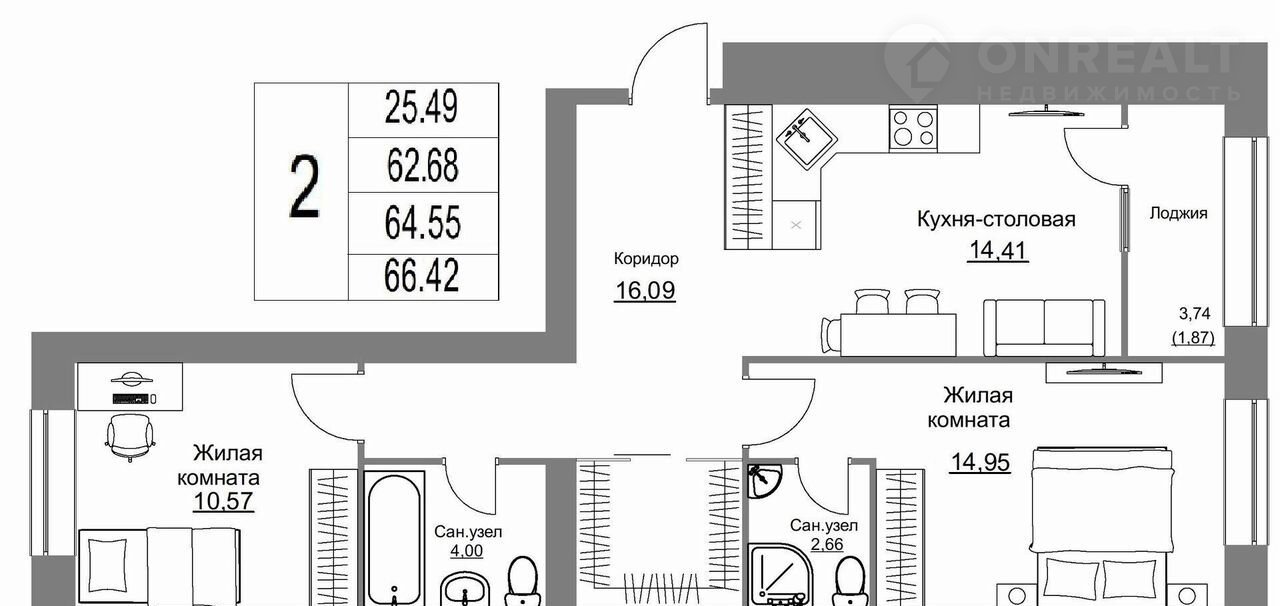 Общая площадь 66.4 м2