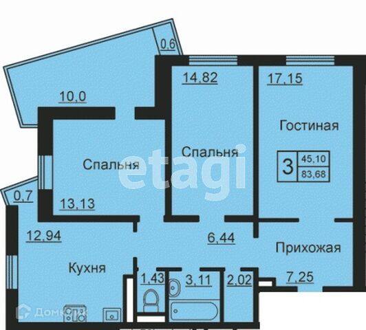 Площадь 83.68 кв.м.
