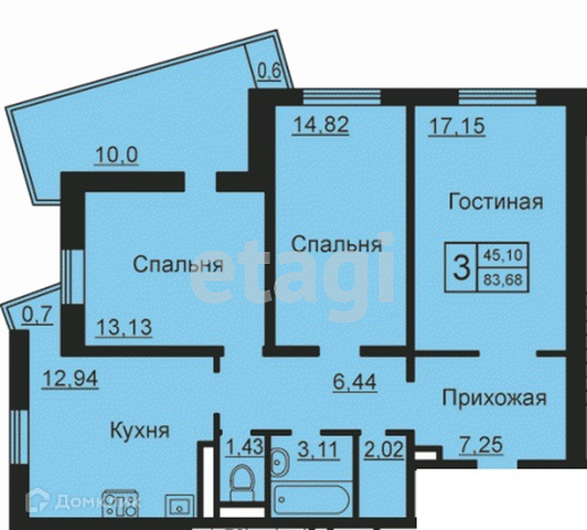 Общая площадь 83 м2