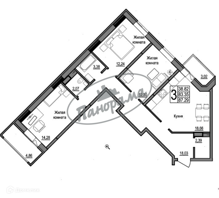 Общая площадь 87 м2