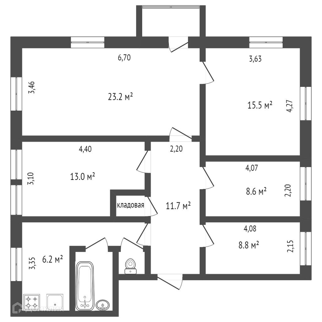 Продаётся помещение свободного типа по улице Кирова дом 96. Помещение находящиеся на втором этаже, подойдёт как для квартиры, так и для офиса! 94 квадратных метра, 5 комнат, много, много пространства для ваших потребностей! Окна выходят сразу на две стороны, есть небольшая кухня 6 кв.м метров, но можно будет сделать перепланировку для её увеличения! Туалет и ванная комната, раздельный санузел. Электричество, газ и вода, всё заведено в квартиру. Клиентам компании Этажи, гарантия чистой сделки, при необходимости помощь одобрения в ипотеке, к тому же под наименьший процент! По всем вопросам - Звоните! Номер в базе: 6689134. Район: Победы площадь