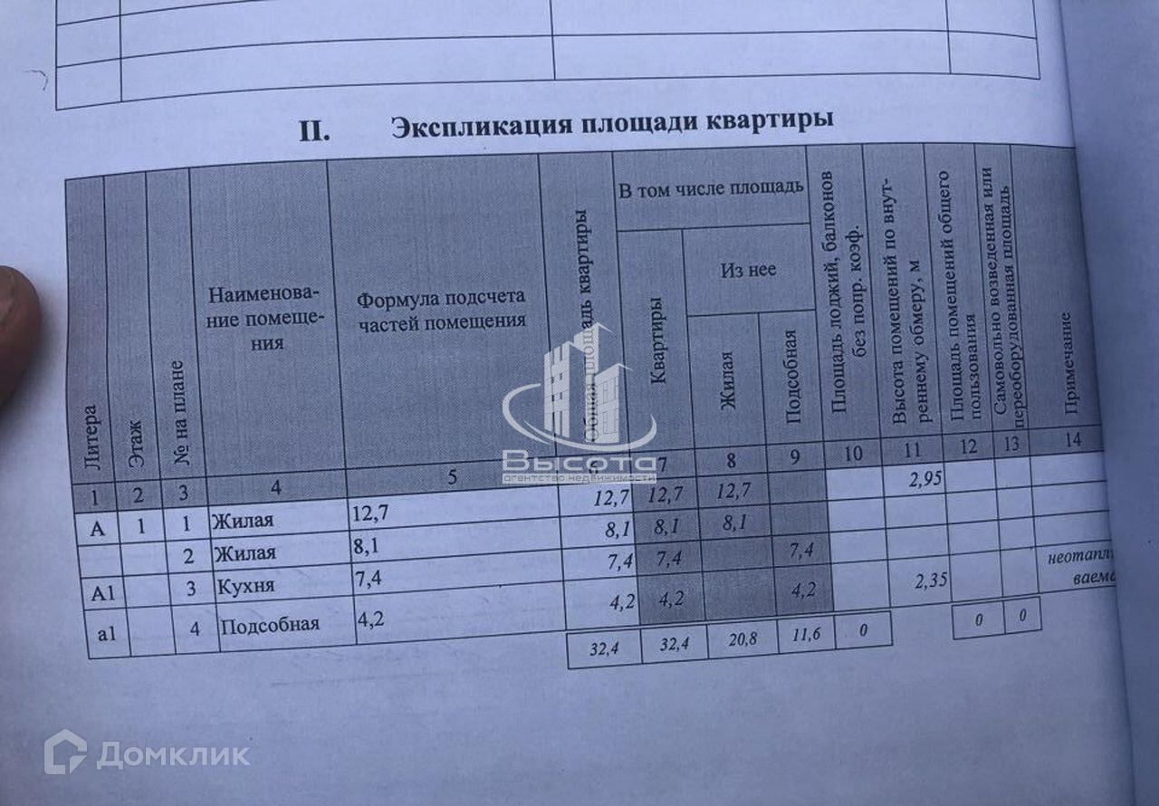 Общая площадь 32.4 м2
