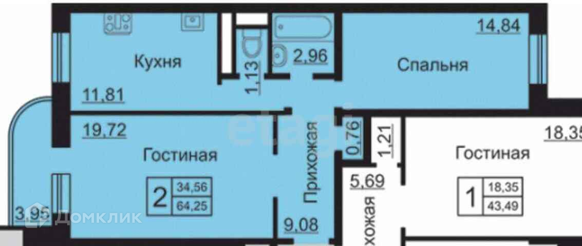 Общая площадь 64.5 м2