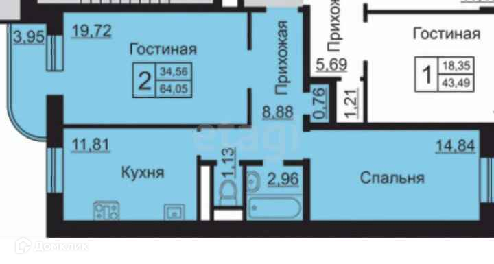 Общая площадь 64.2 м2