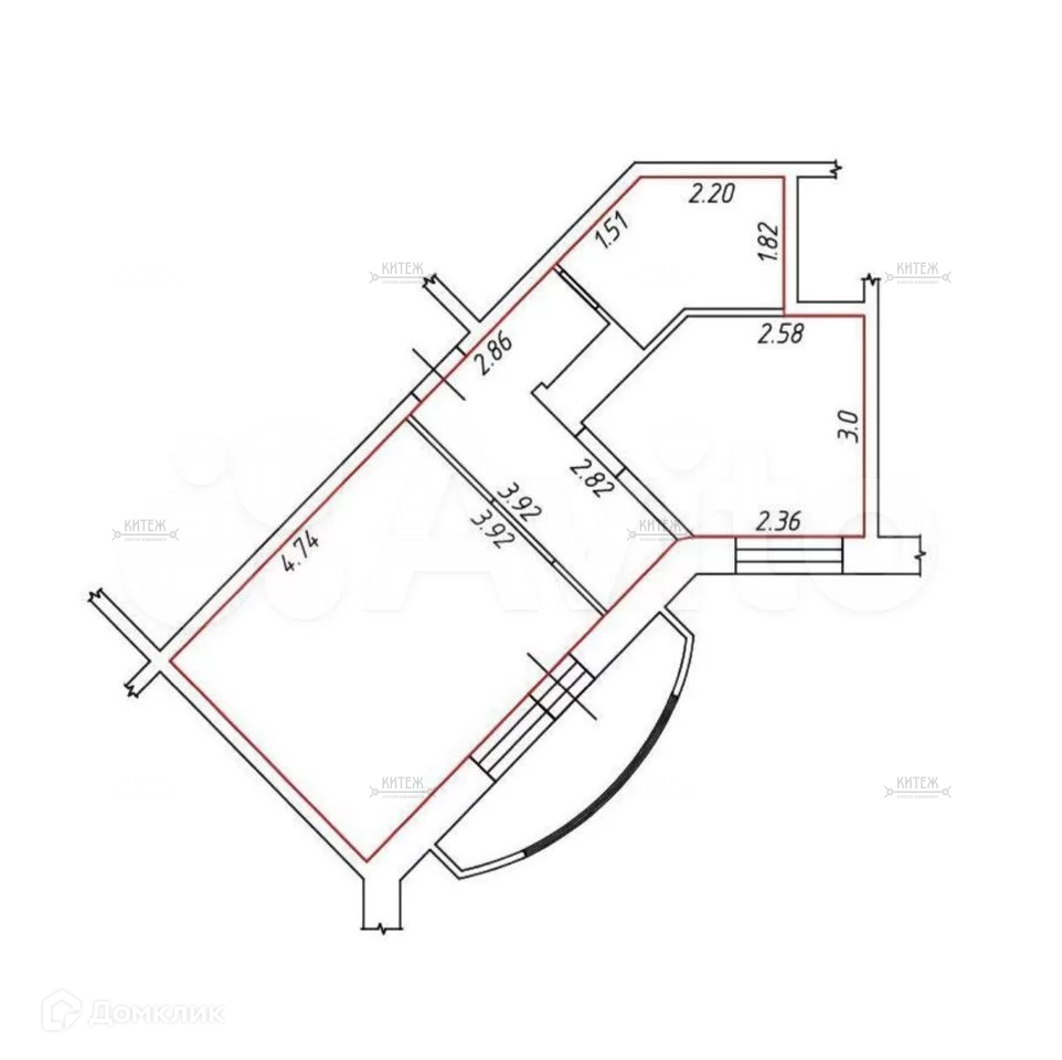 Общая площадь 40.7 м2