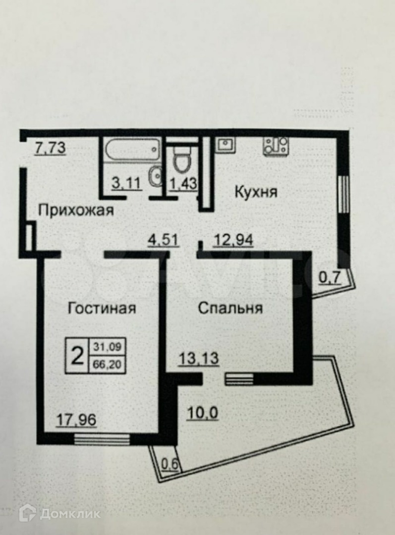 Общая площадь 66 м2